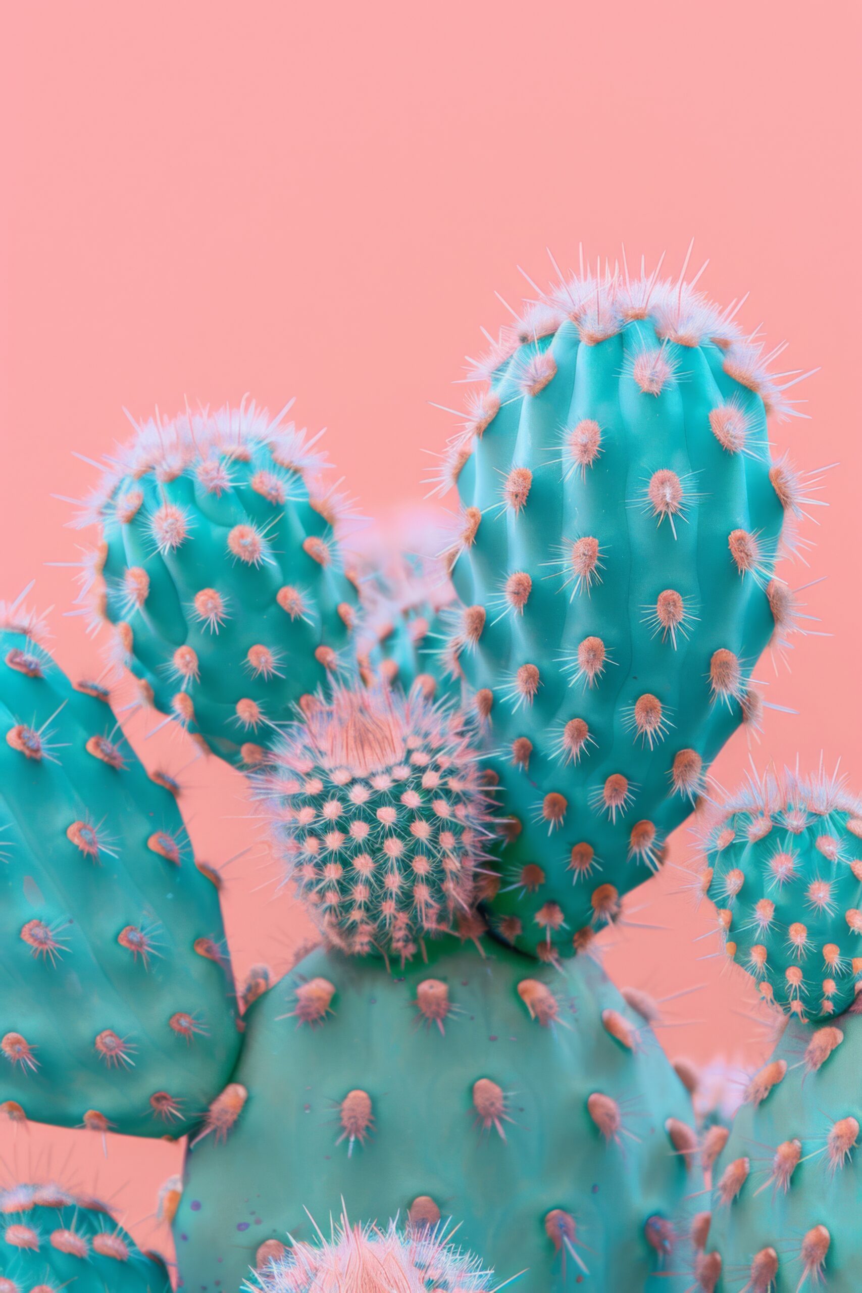 Stacheln in zartem Rosa, fast elektrisch gegen den matten Türkis. Die kantige Silhouette zieht Blicke durch den starken Farbkontrast auf sich. Dynamisch und ungewöhnlich in Szene gesetzt.