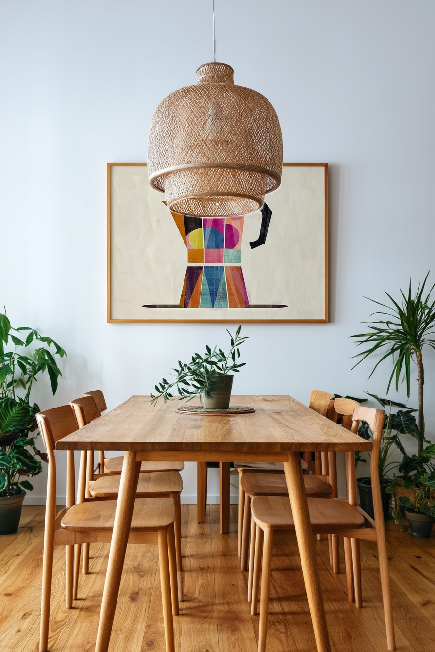Grafische Espressokanne mit bunten geometrischen Formen. Klare Flächen mit strukturiertem Farbauftrag.