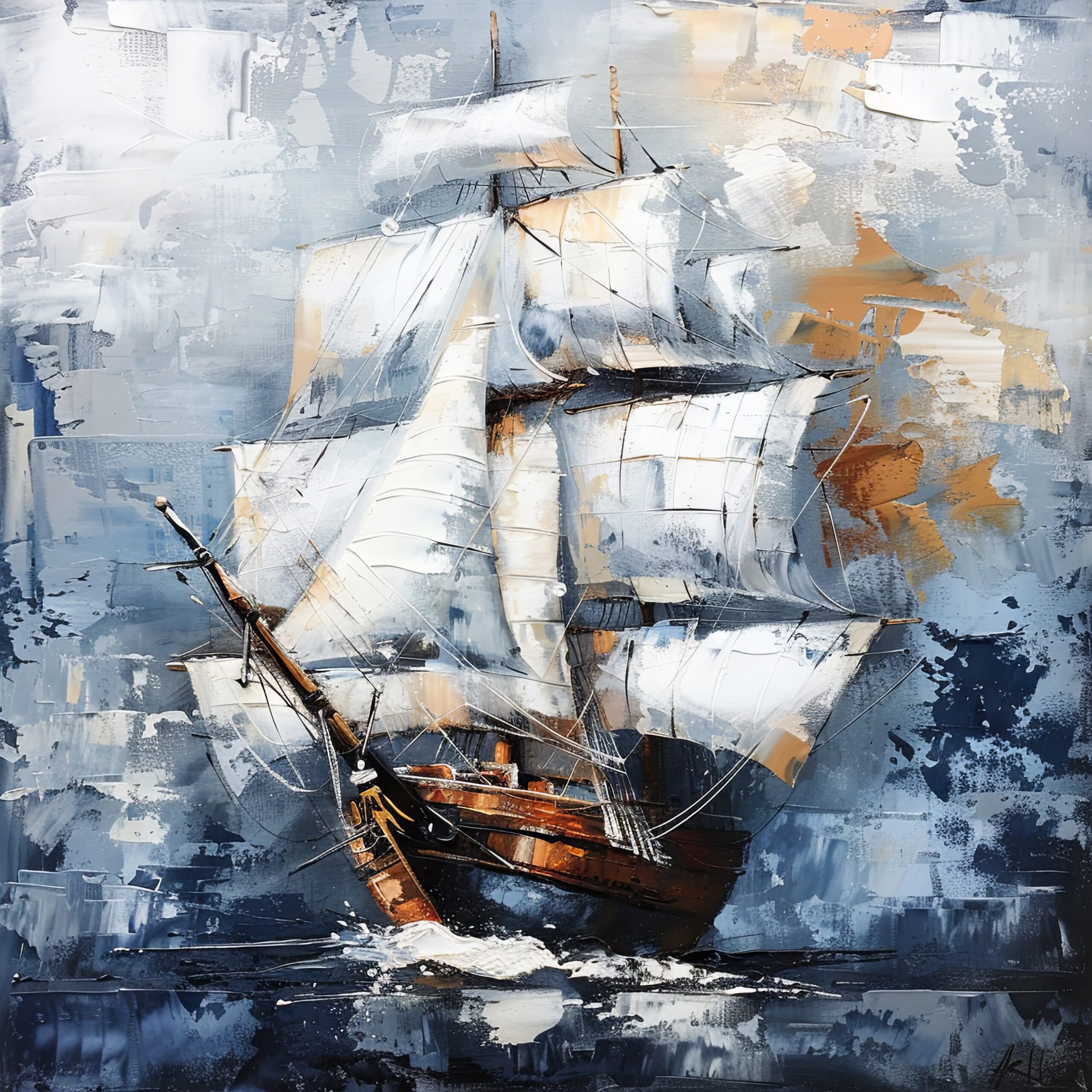 Malerei Poster Segelschiff weiß dynamisch maritime