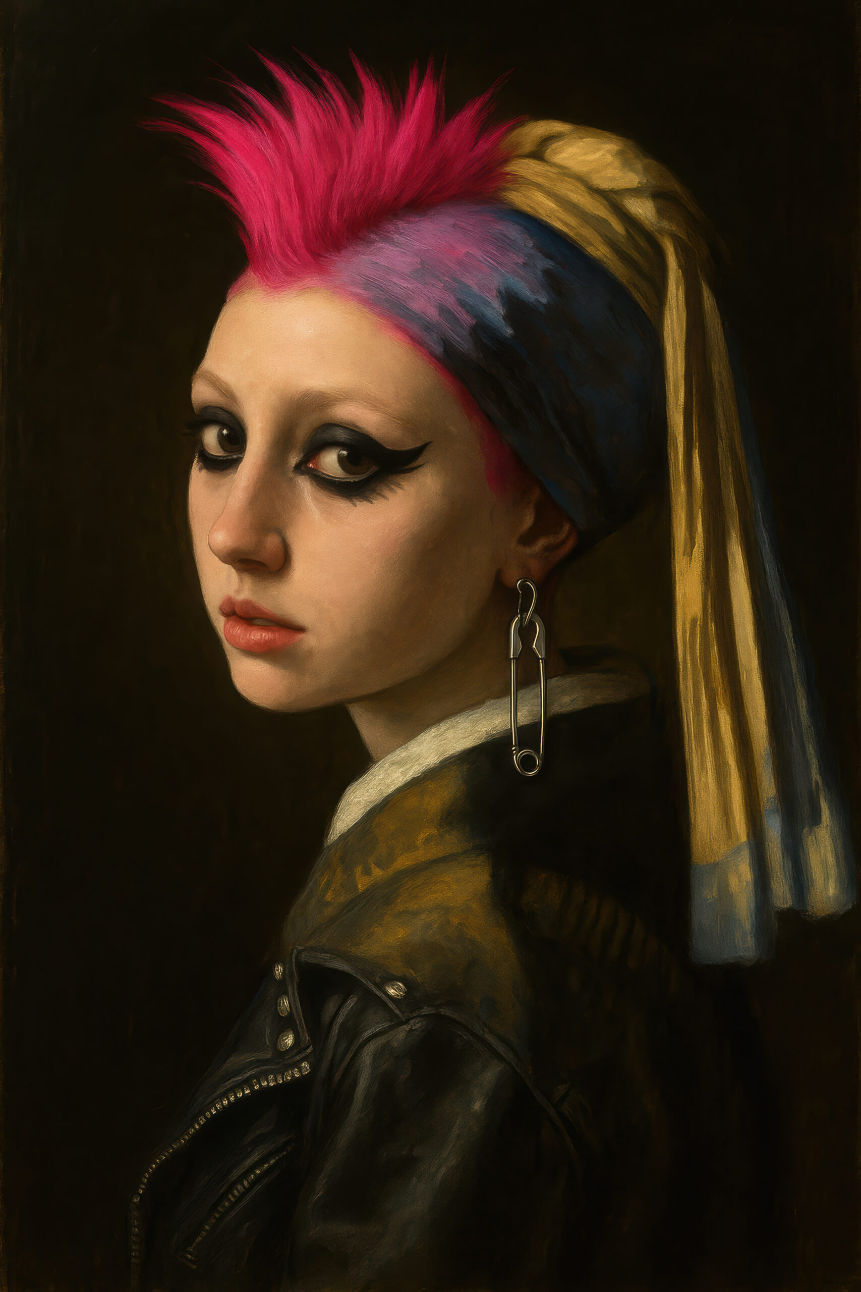 Fotografie Poster Mädchen Punk Lederjacke Irokesenschnitt