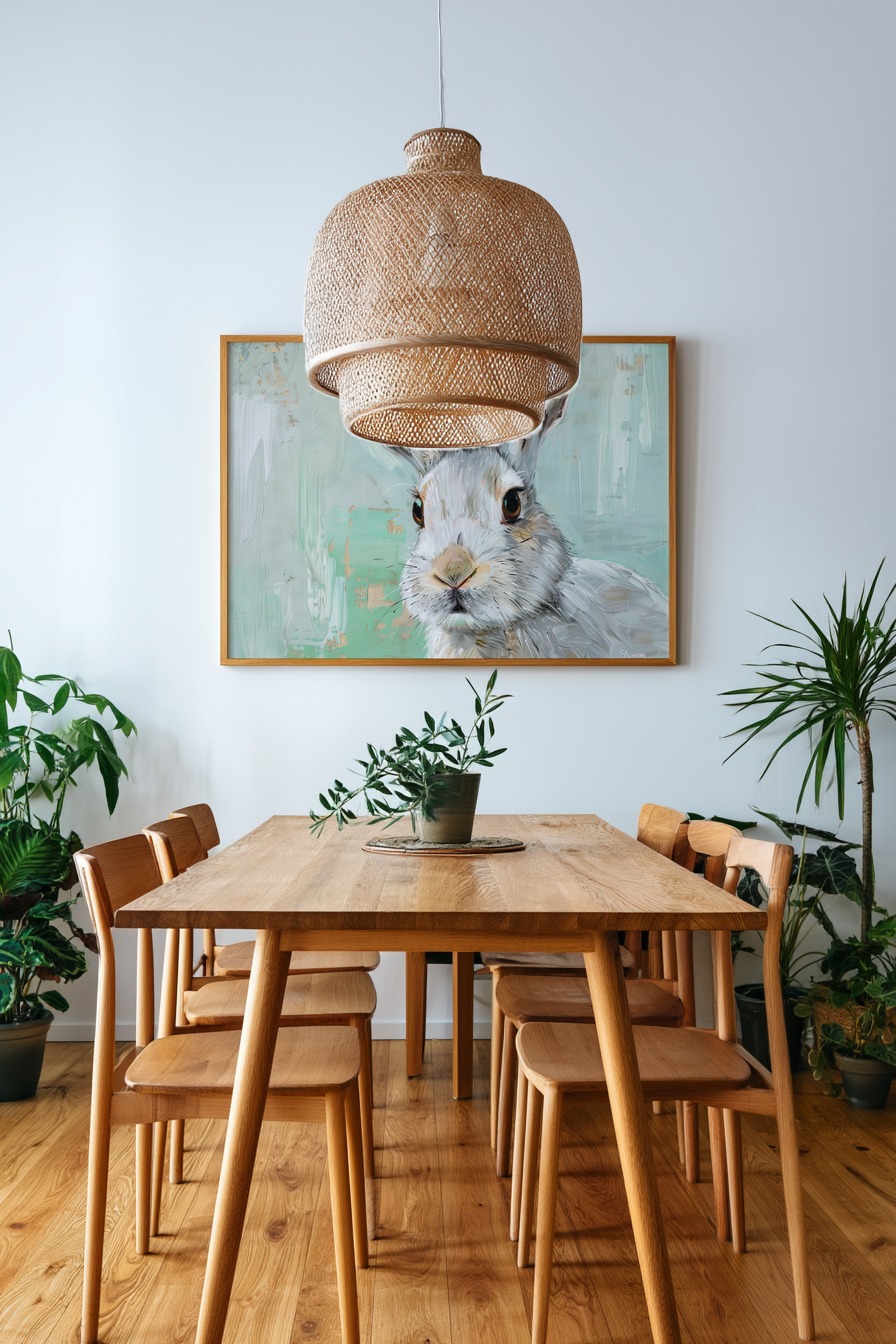 Sanfte Ruhe des Hasenkopfes füllt den Raum. Gedruckt auf 170 g/m² FSC-Papier mit halbmattem Finish. Wird ungerahmt geliefert – ideal zum selbst Einrahmen oder solo an der Wand.
