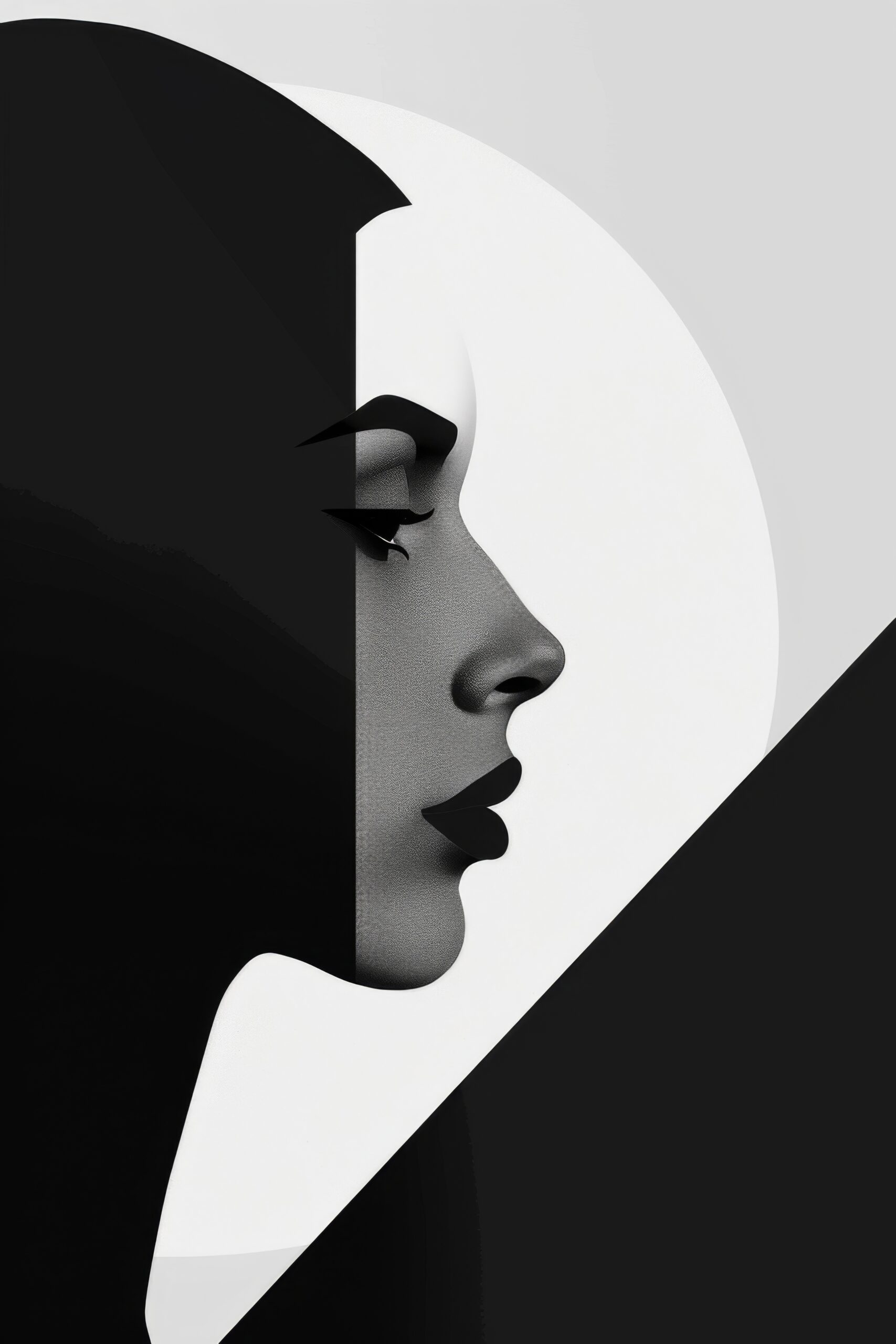 klare Linien treffen auf texturierte Haut, die Lippen bilden einen dunklen Kontrast, der das Profil scharf umreißt und Spannung erzeugt