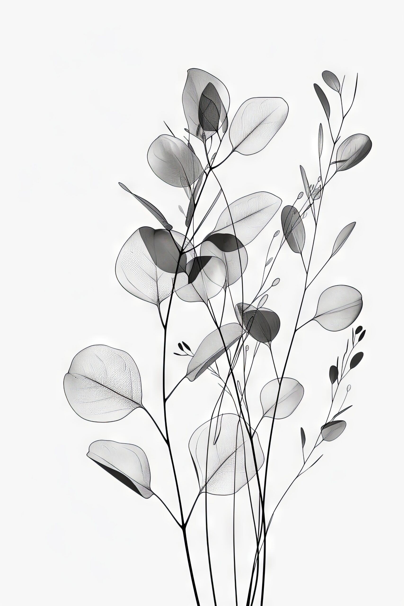 Feine Blätter zeichnen zarte Konturen in Schwarz-Weiß. Gedruckt auf halbmattem 170 g/m² FSC-Papier, das die klare Linienführung ohne Glanz verstärkt. Wird ungerahmt geliefert – zum selbst Einrahmen oder solo an der Wand.