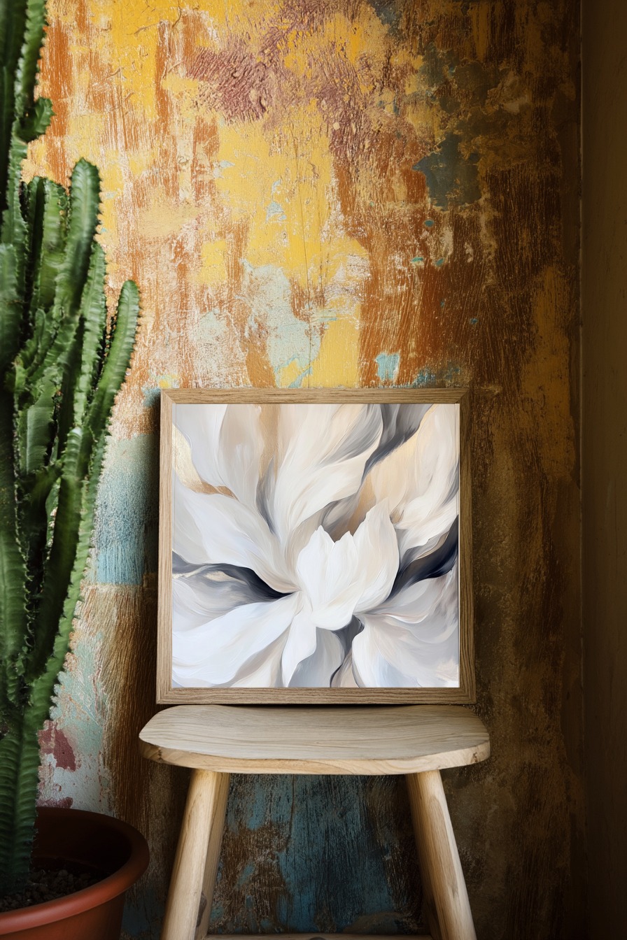 Eine große weiße Blüte in sanften Beigetönen. Gedruckt auf halbmattem Papier (170 g/m², FSC-zertifiziert), das die weichen Farbübergänge betont. Wird ungerahmt geliefert – pripratisch zum selbst Einrahmen oder allein wirkungsvoll.