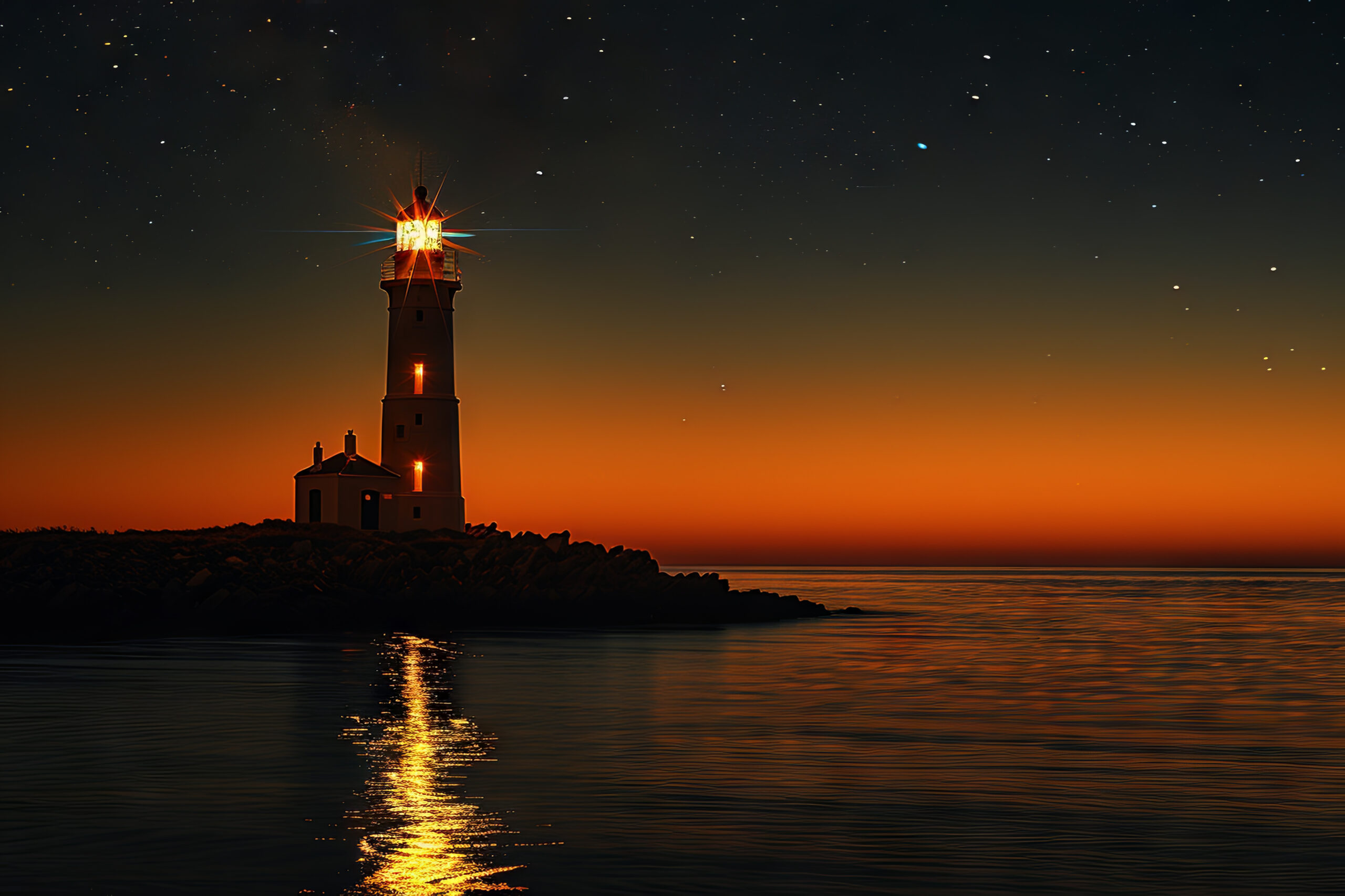 Fotografie Poster Leuchtturm Abendrot Küste Meer Nacht