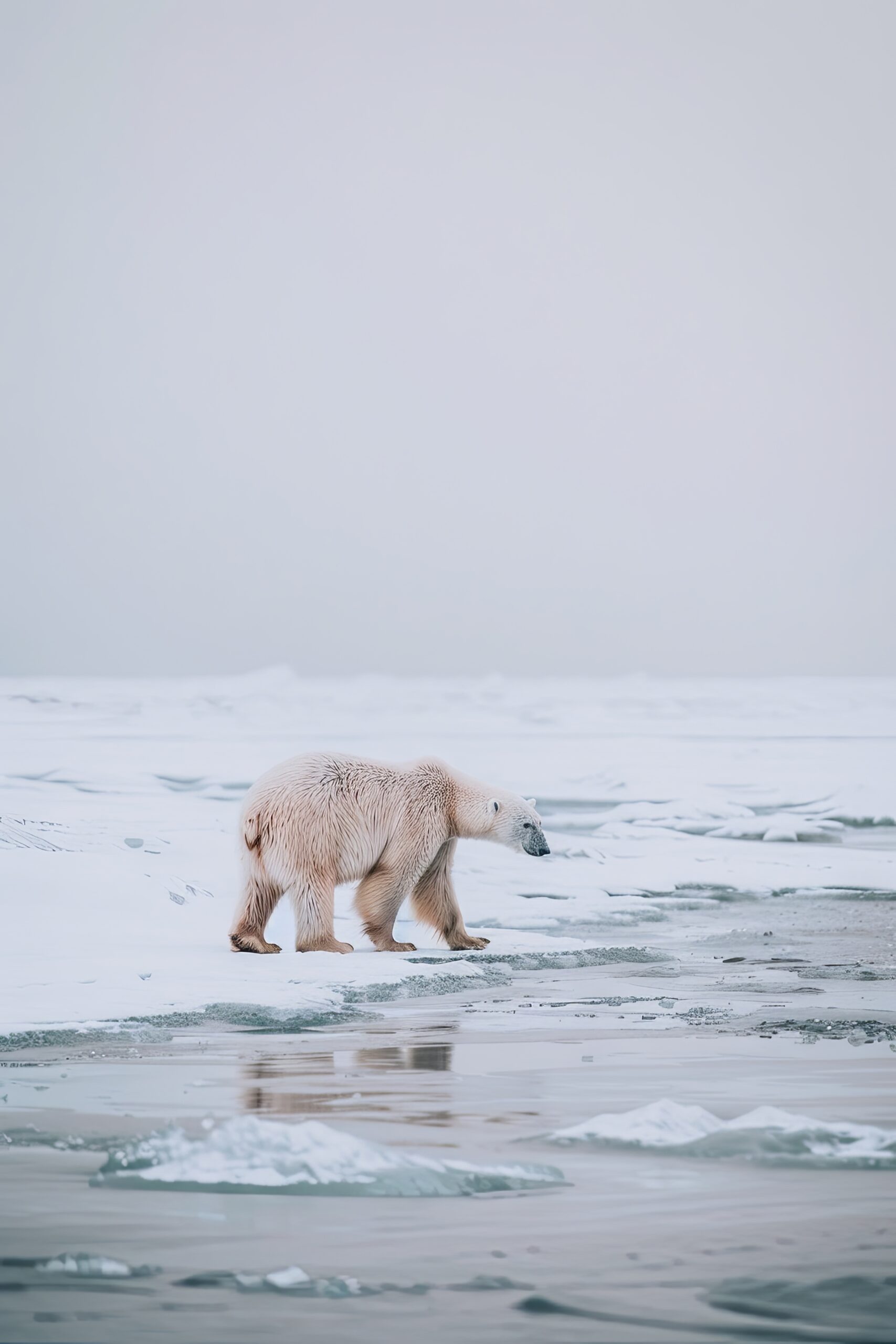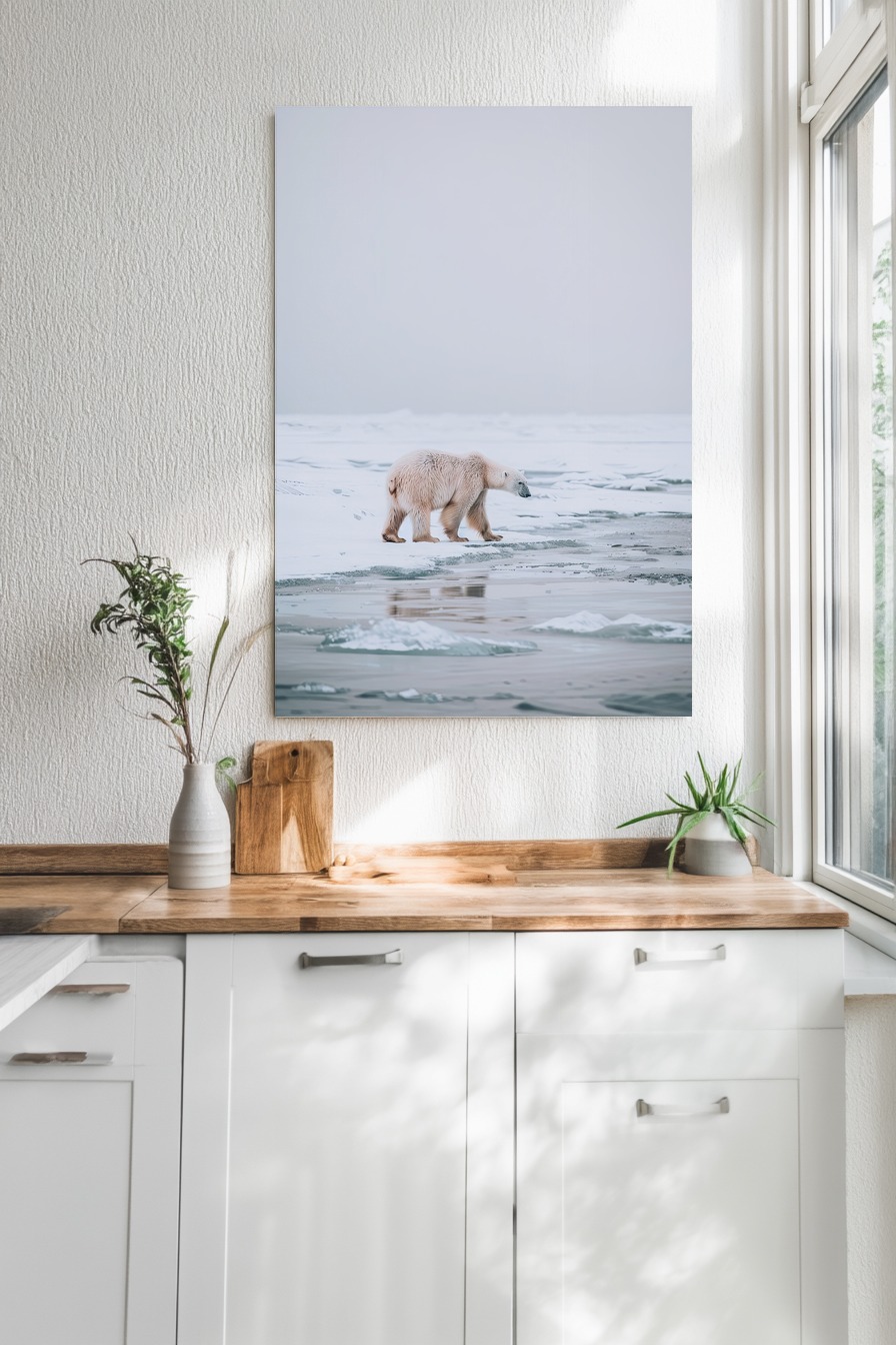 Fotografie Poster Eisbär Eislandschaft minimalistisch weiß grau