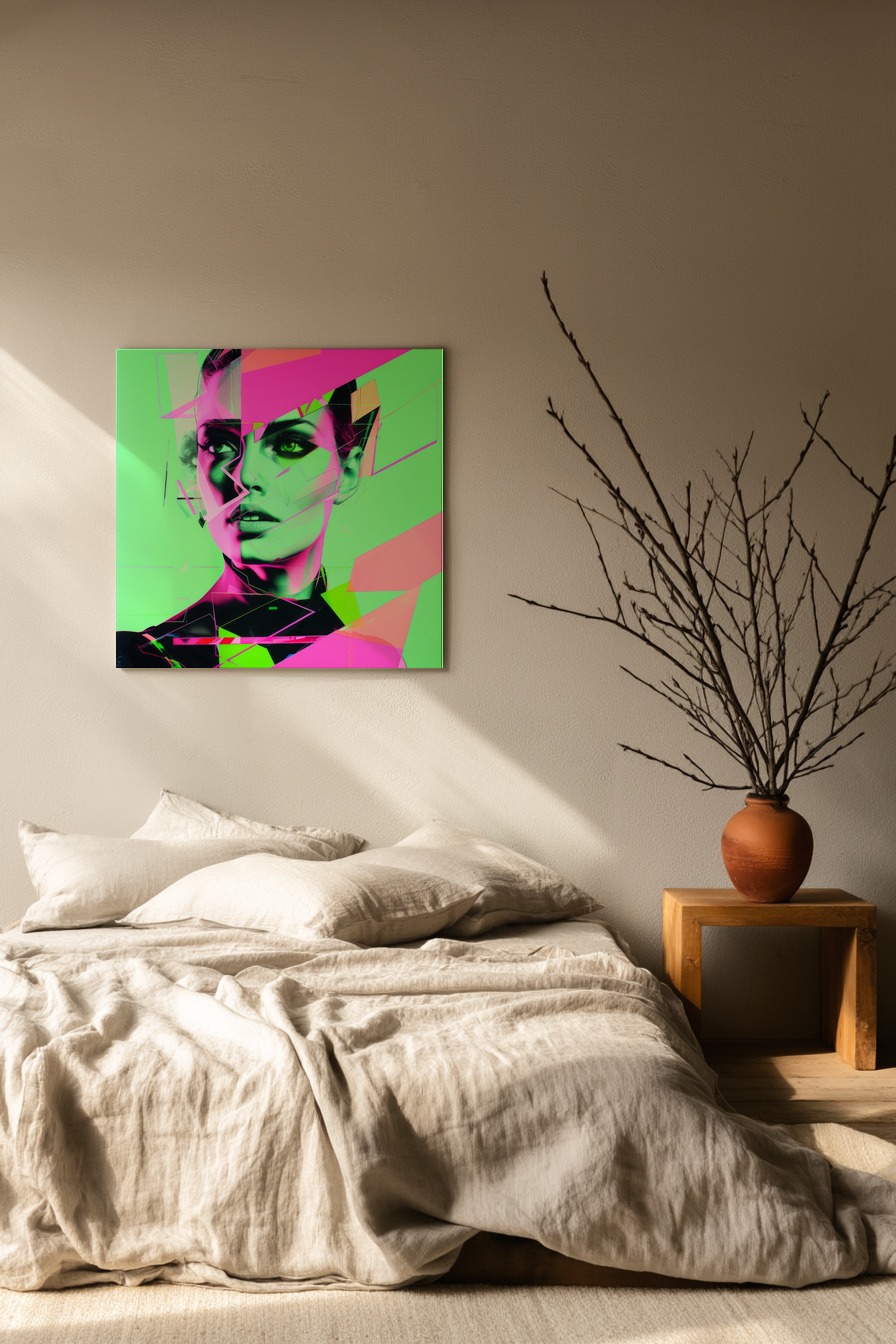 Digitale Kunst Poster Frau Gesicht abstrakt Neonfarben grün pink