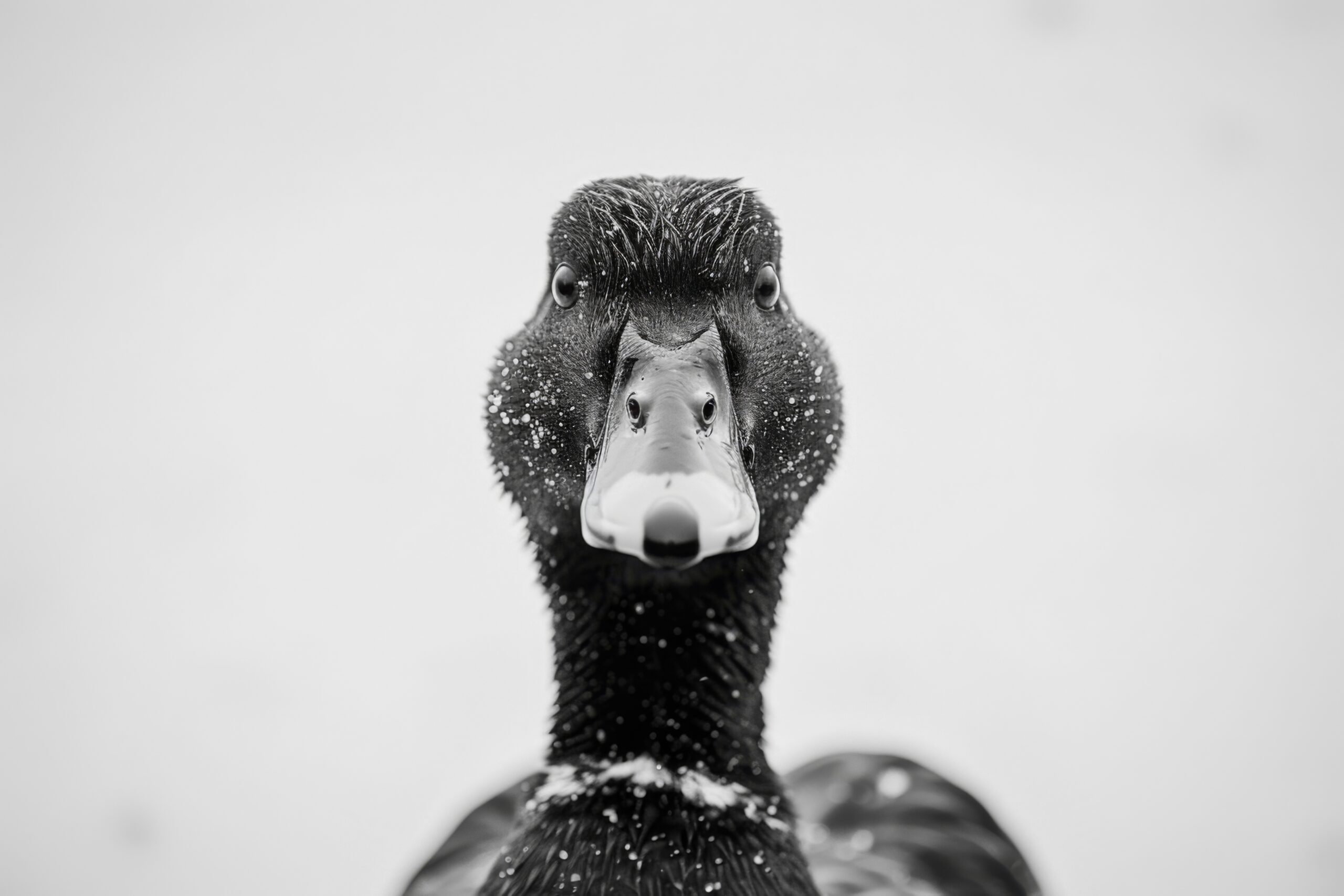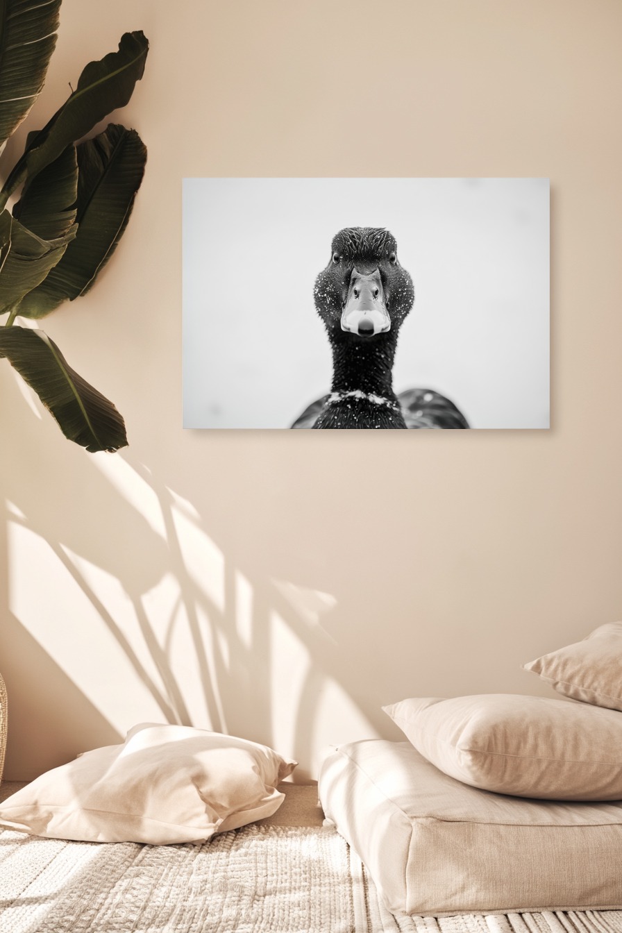Fotografie Poster Ente frontal Nahaufnahme schwarz-weiß