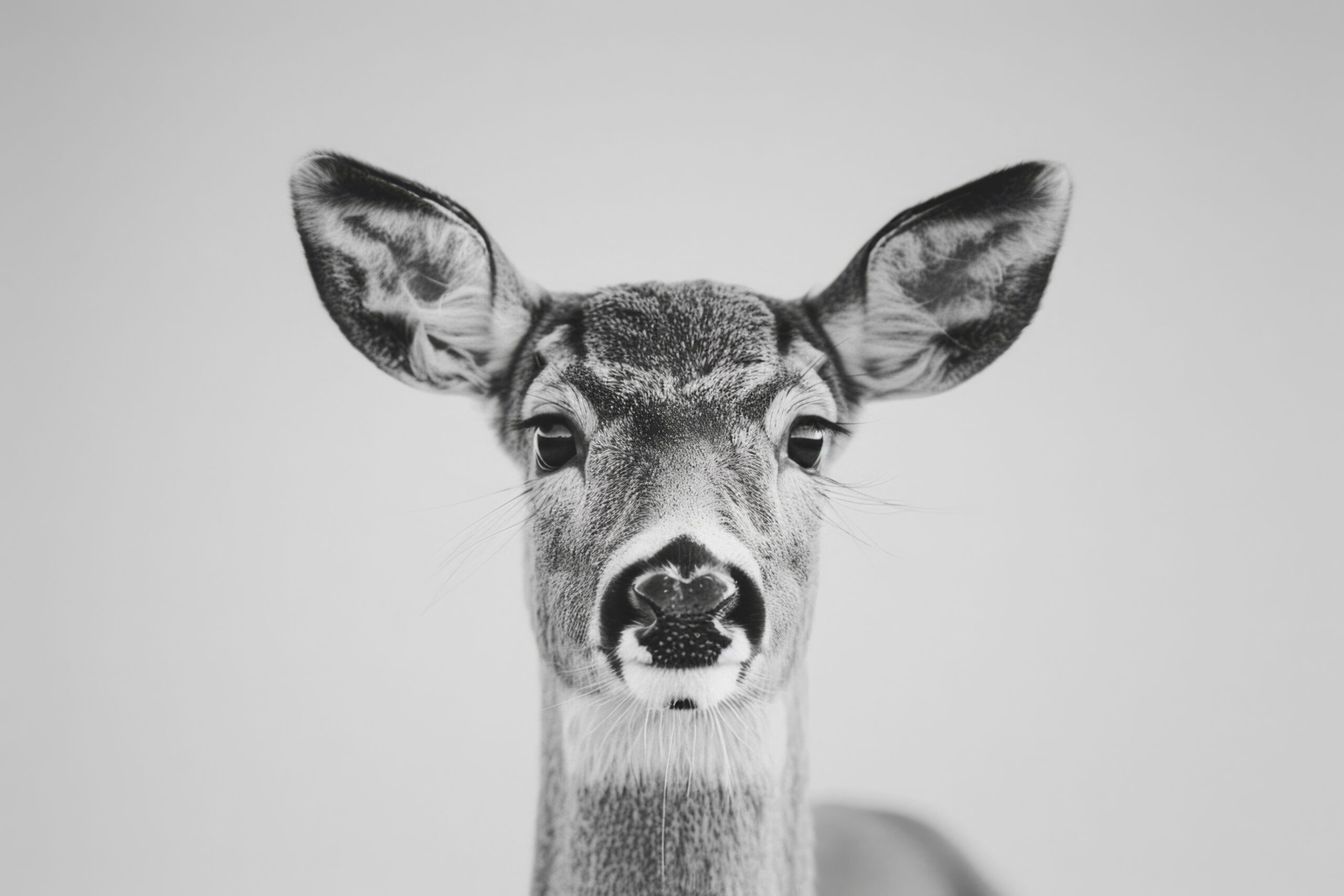 Nahaufnahme der Nase und des Gesichts eines Hirsches. Klare, feine Fellstruktur ist sichtbar.