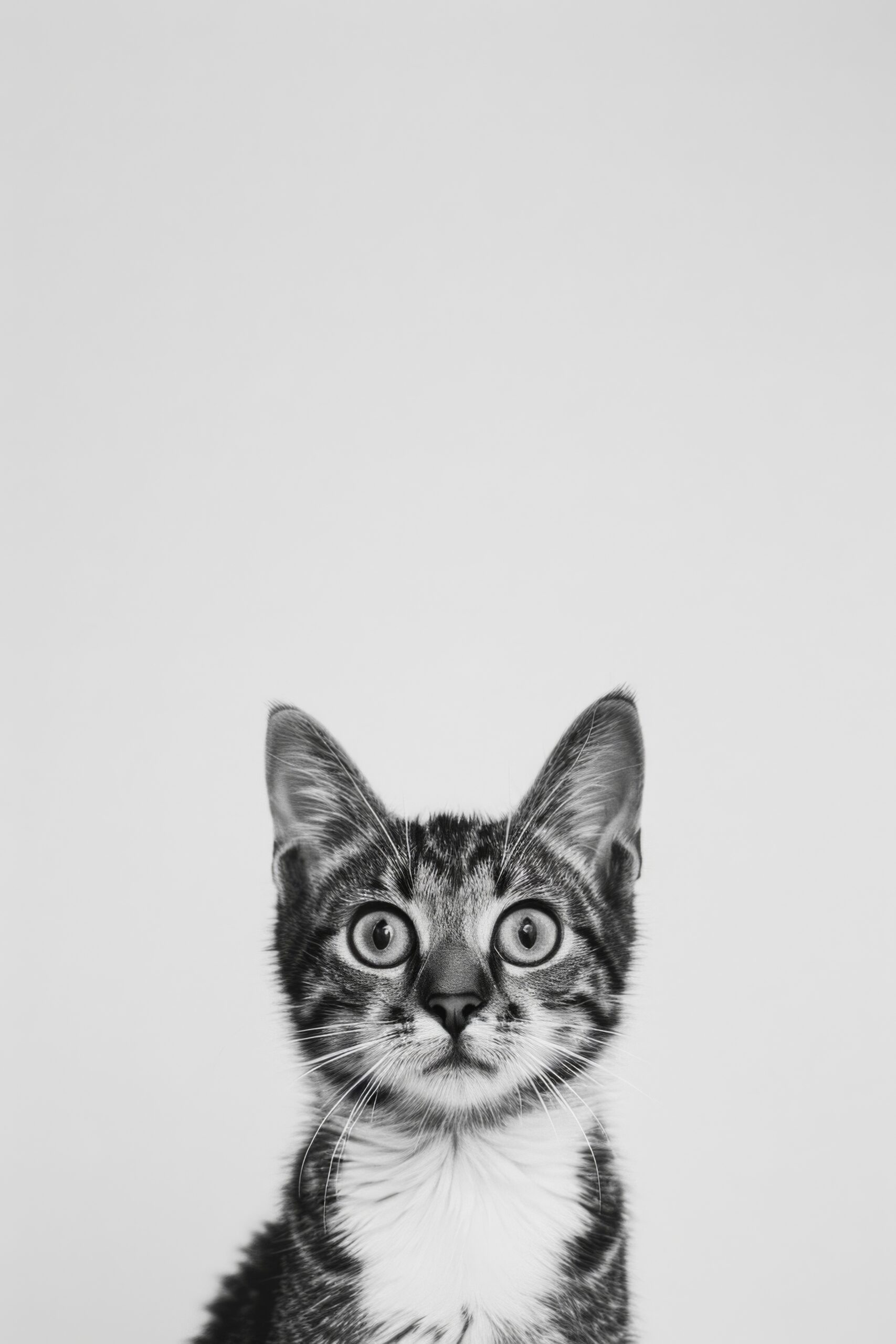 Der klare Blick der Katze zieht den Blick auf sich, jede Fellzeichnung detailreich hervorgehoben, ruhige Haltung trifft auf gespannte Aufmerksamkeit.