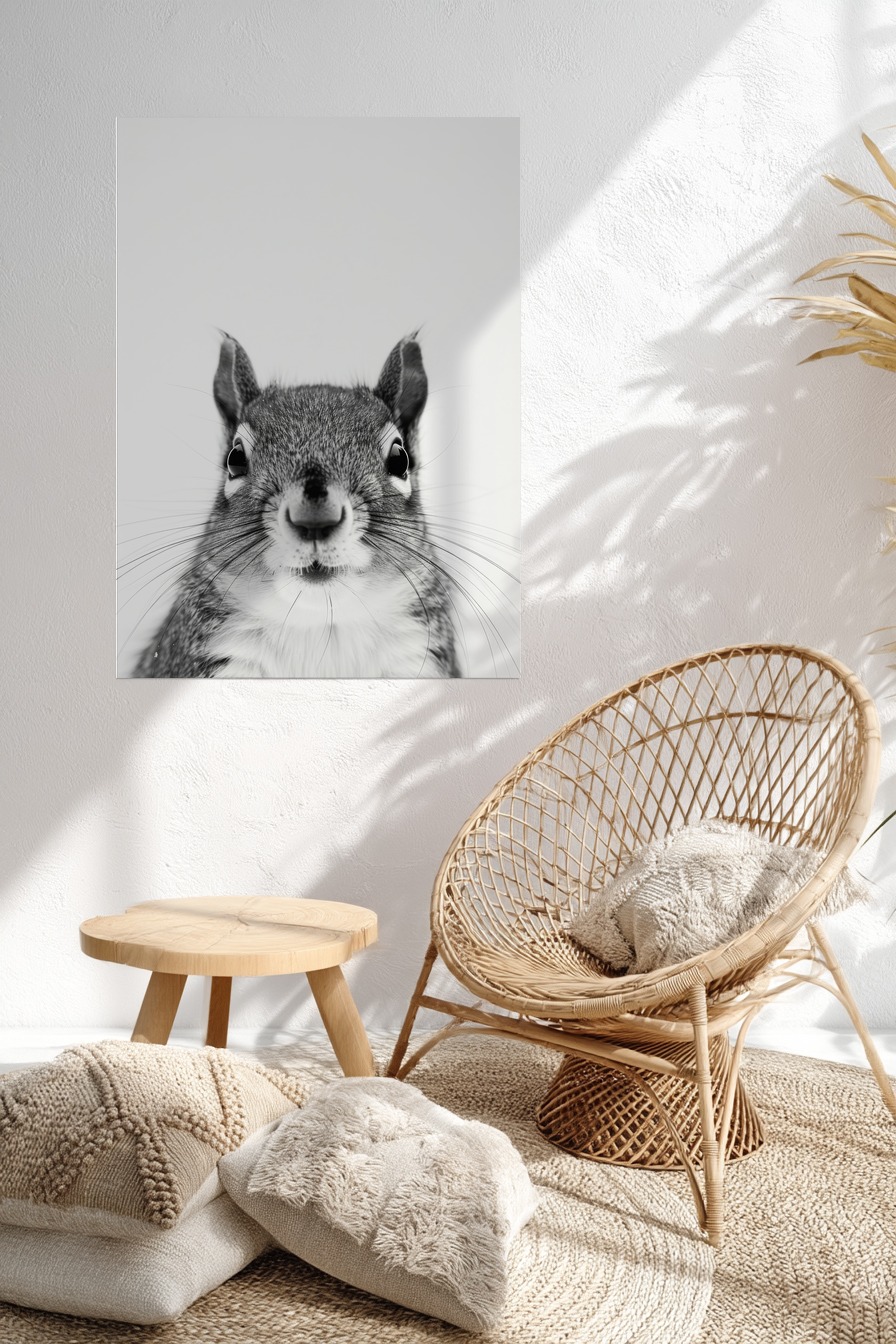 Fotografie Poster Eichhörnchen Nahaufnahme schwarz-weiß