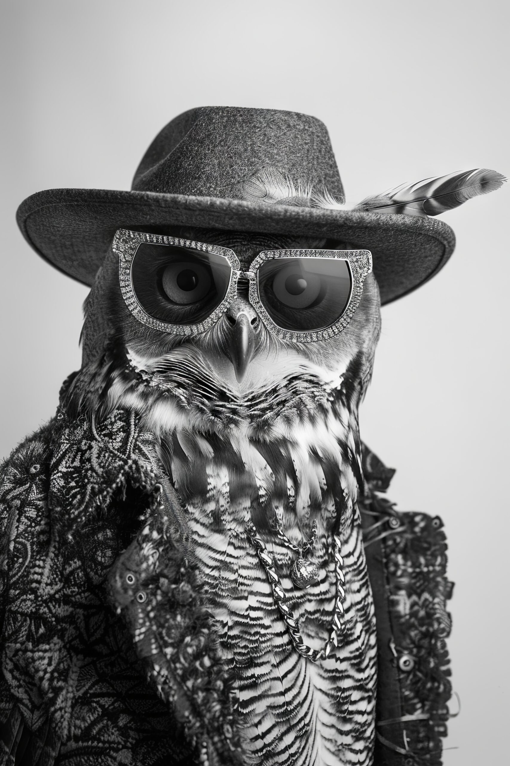 Fotografie Poster Eule Sonnenbrille Hut schwarz-weiß modisch