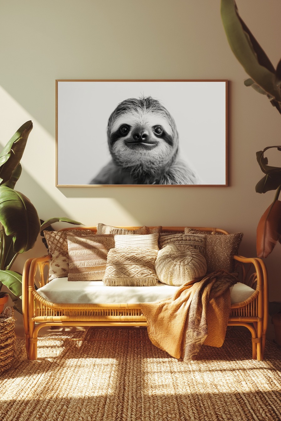 Fotografie Poster Faultier Nahaufnahme Schwarz-Weiß