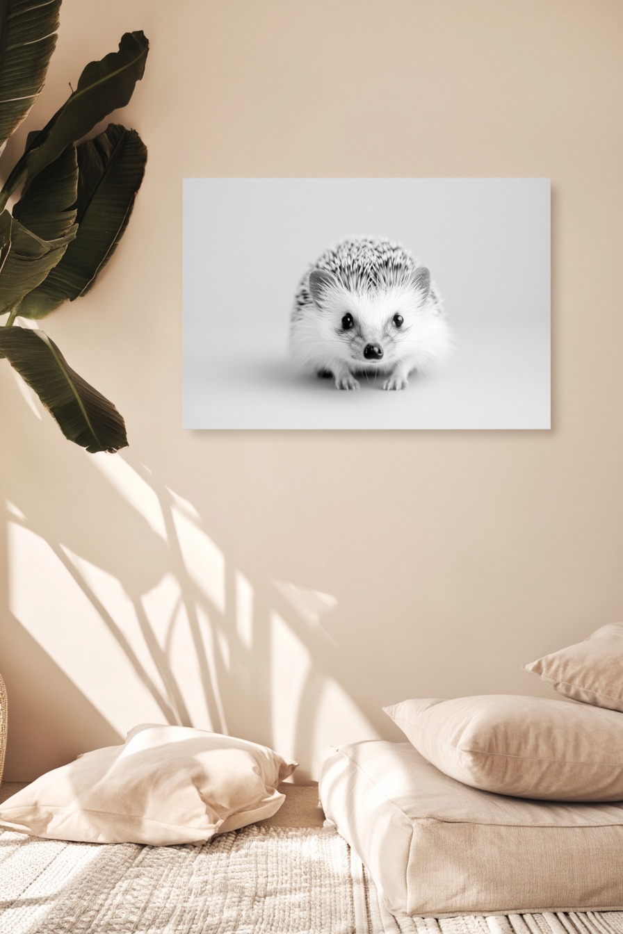 Fotografie Poster Igel frontal schwarz-weiß detailreich