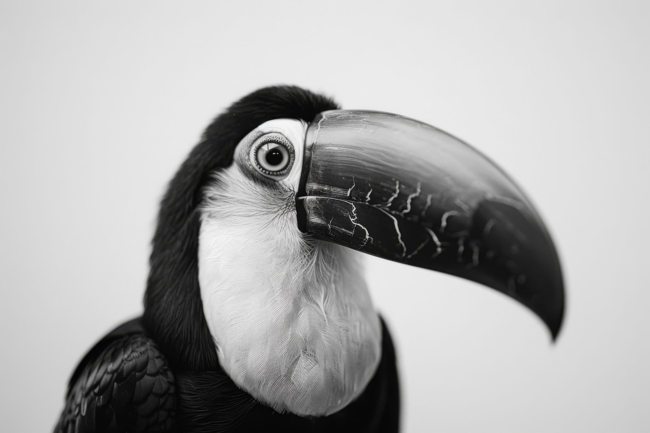 Nahaufnahme vom Schnabel mit sichtbaren Strukturen und Texturen, Kopf leicht seitlich gezeigt