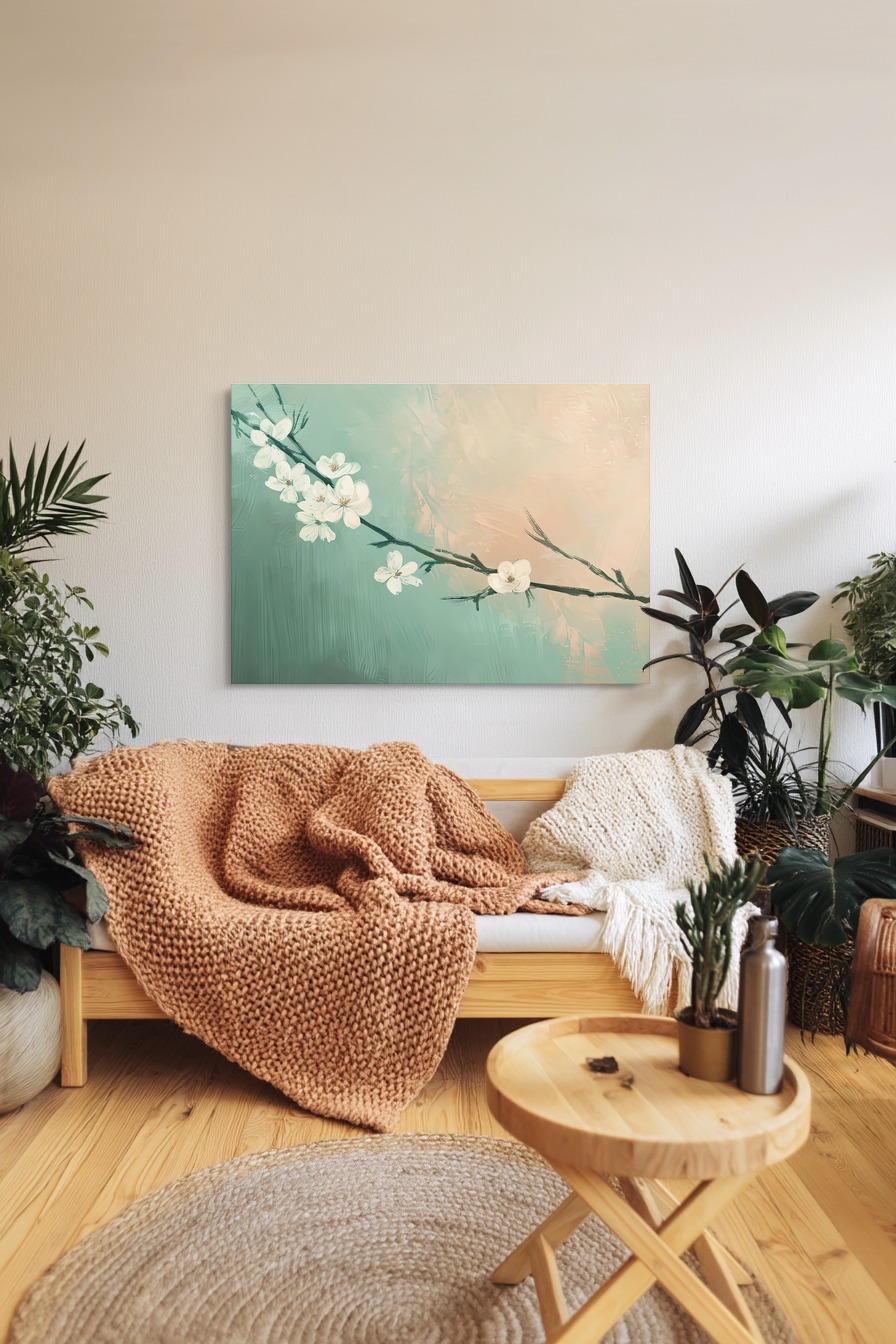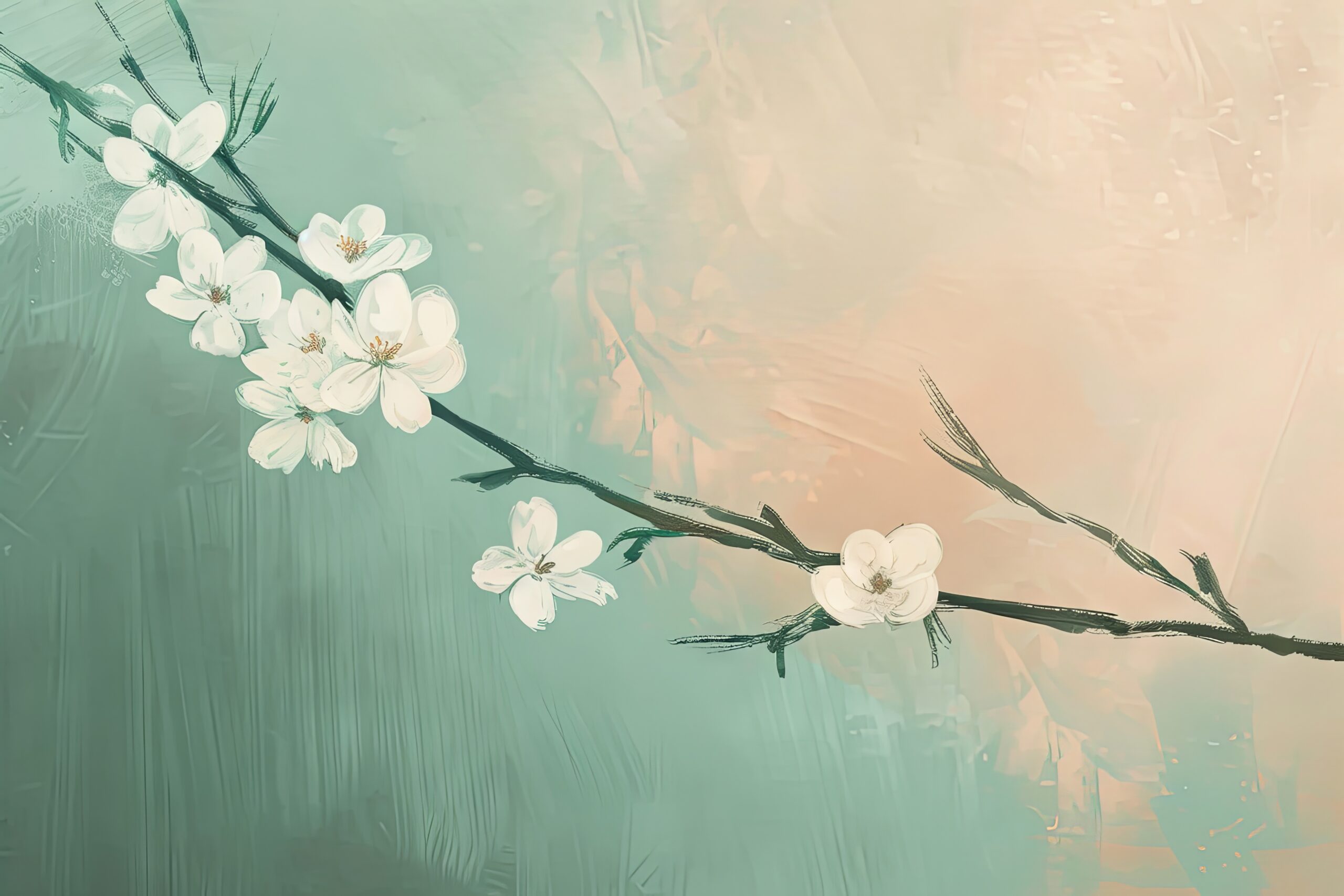 Digitale Kunst Poster Blütenzweig minimalistisch weiß Pastell