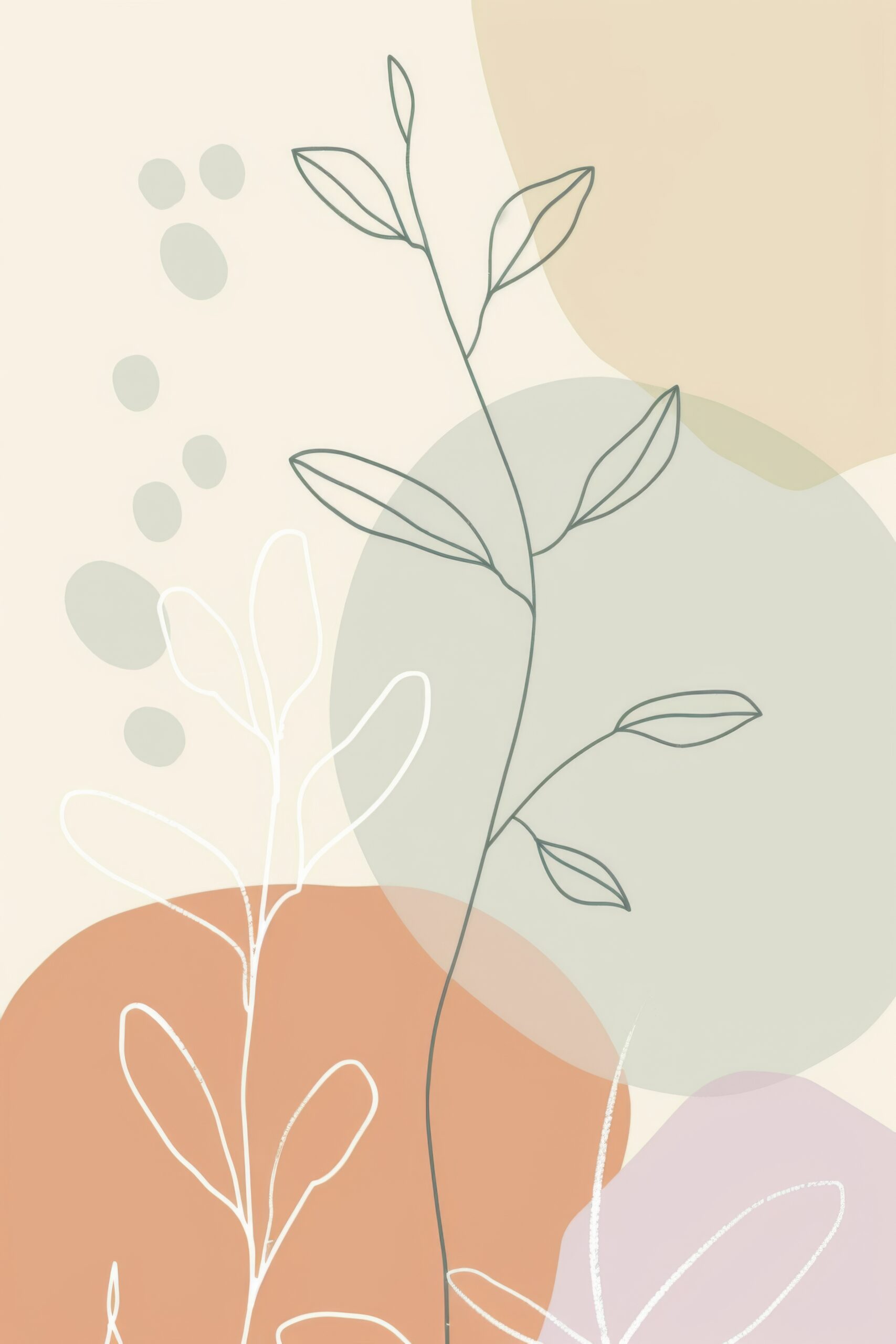 Die filigranen Linien des Zweigs zeichnen sich klar gegen die weichen Farbflächen ab. Das Zusammenspiel aus Linien und Farbflächen schafft Spannung in der Zurückhaltung.