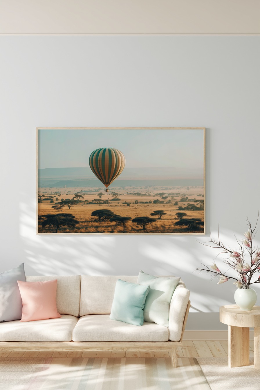 Heißluftballon über Savanne Poster
