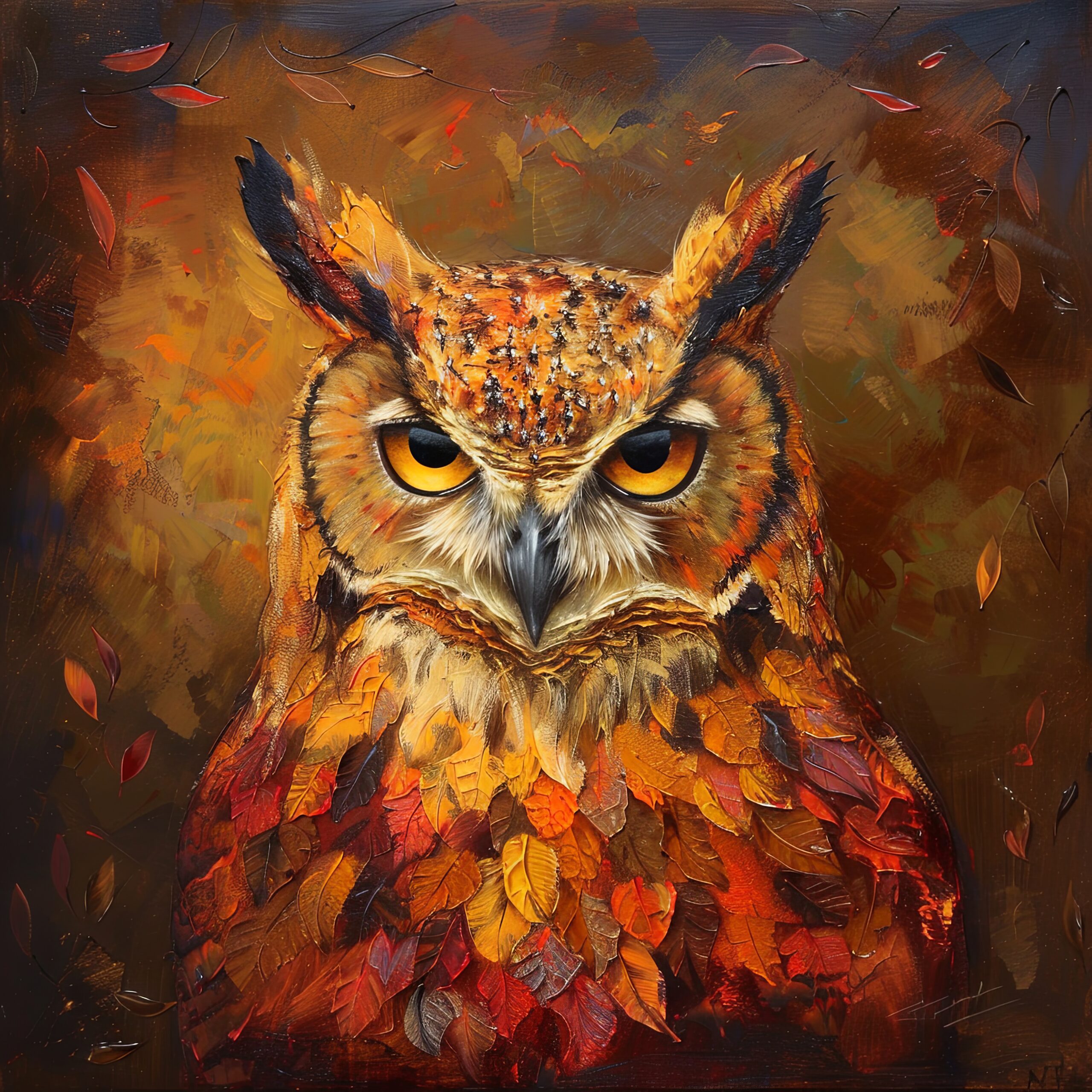 Ein intensiver Blick einer Eule, komponiert aus herbstlichen Blättern. Gedruckt auf halbmattem Papier (170 g/m², FSC-zertifiziert) mit leichtem Glanz. Wird ungerahmt geliefert – zum selbst Einrahmen oder solo an die Wand.