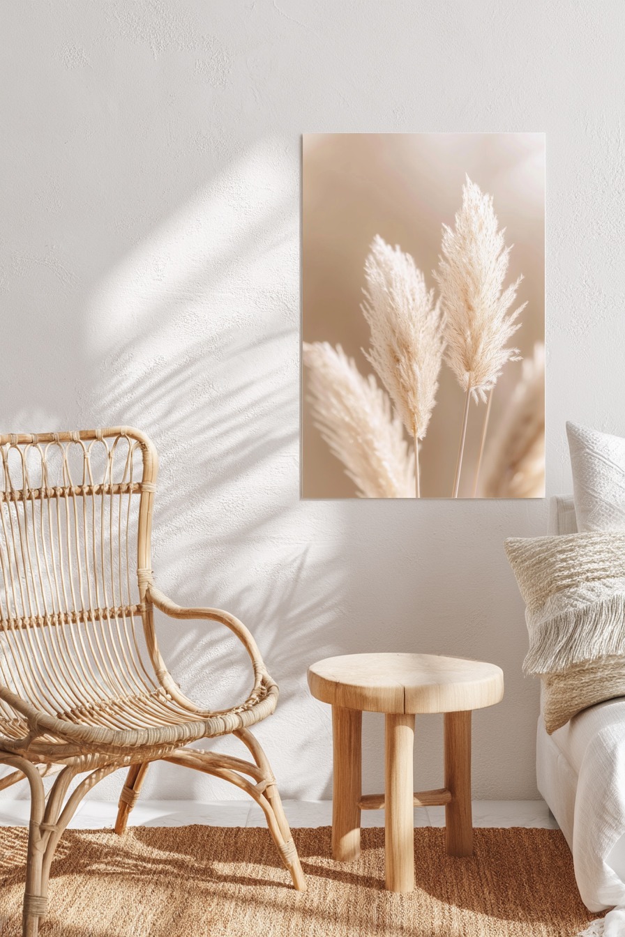 Zarte, trockene Pampasgraswedel, weich und locker angeordnet.