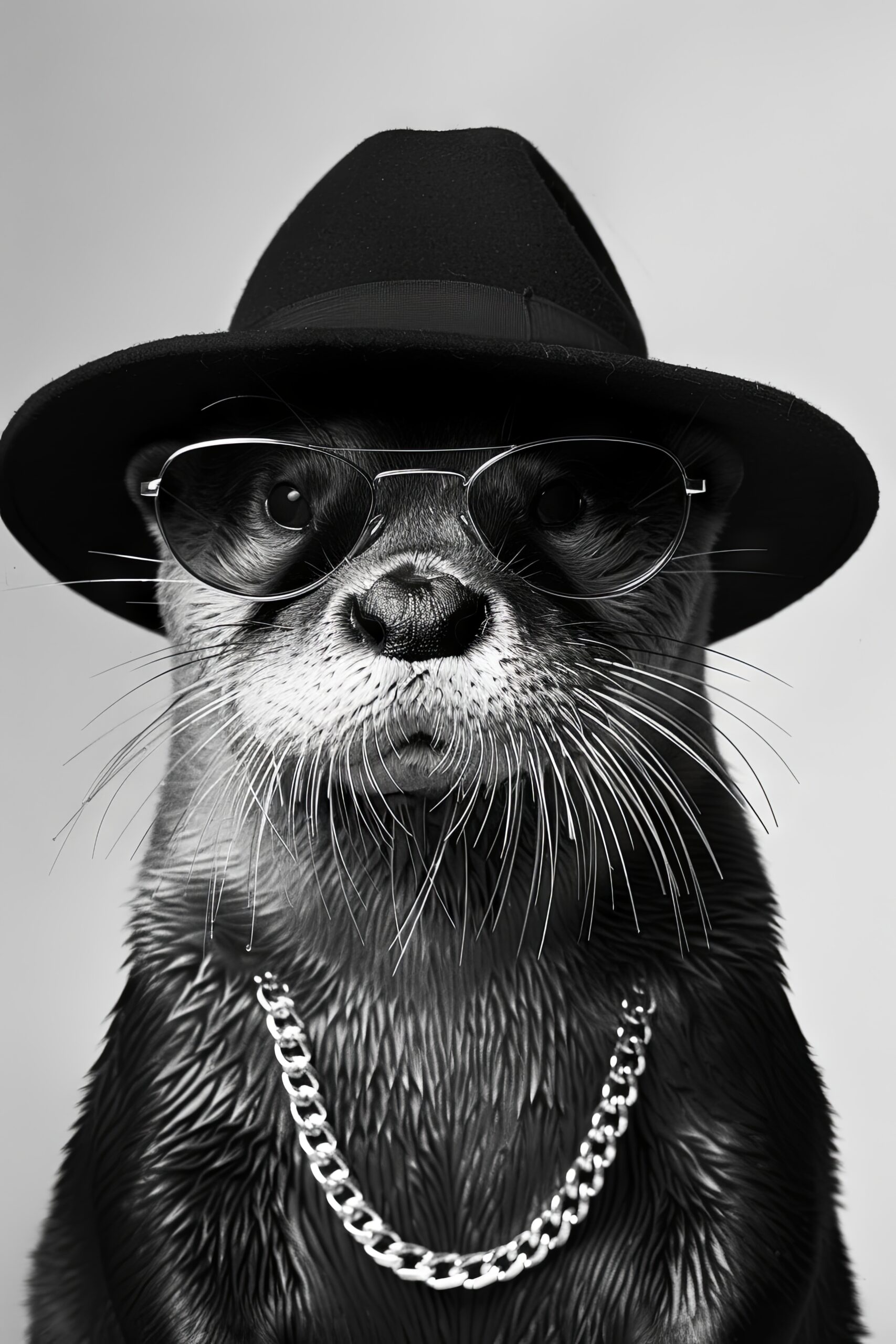 Fotografie Poster Otter schwarz-weiß Hut Sonnenbrille