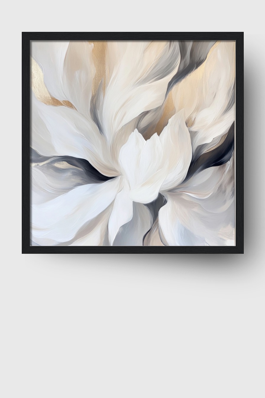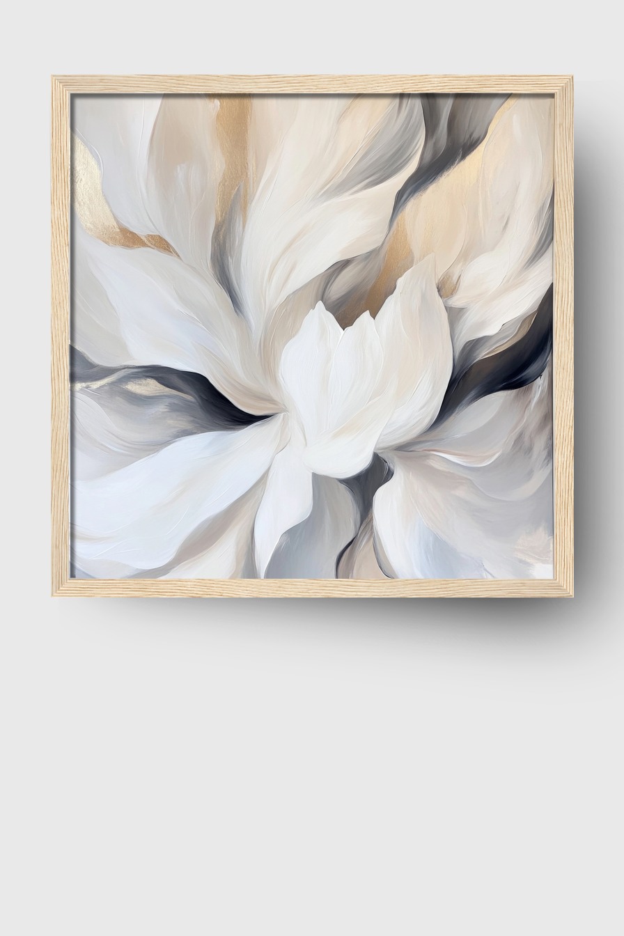 Poster mit abstrakter weißen Blüte in sanften Beige- und Grautönen