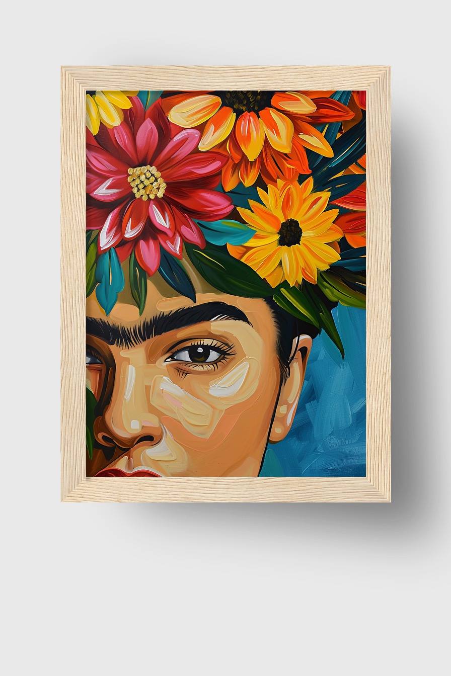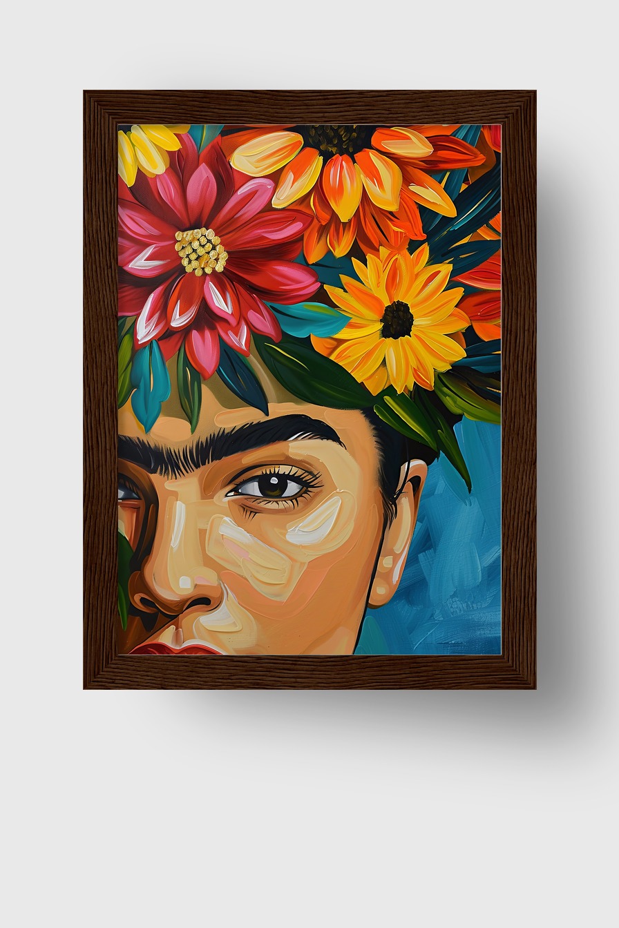 Gesicht Blumenkranz Gerahmt