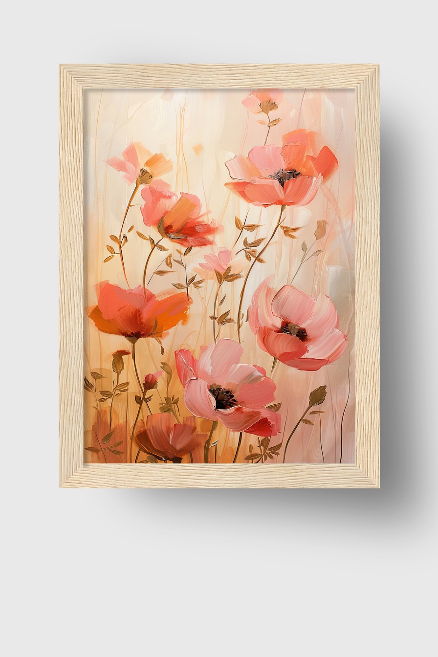 Malerei Poster Mohnblumen rosa orange minimalistisch