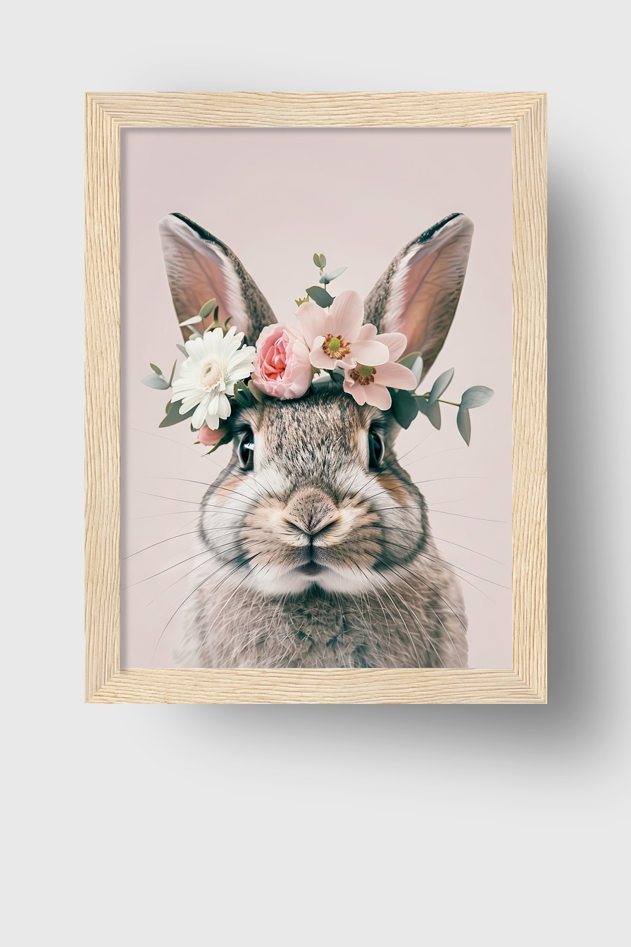 Kaninchen Blumenkranz Zart Gerahmt