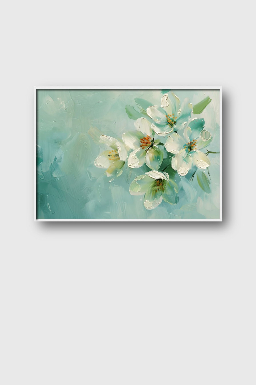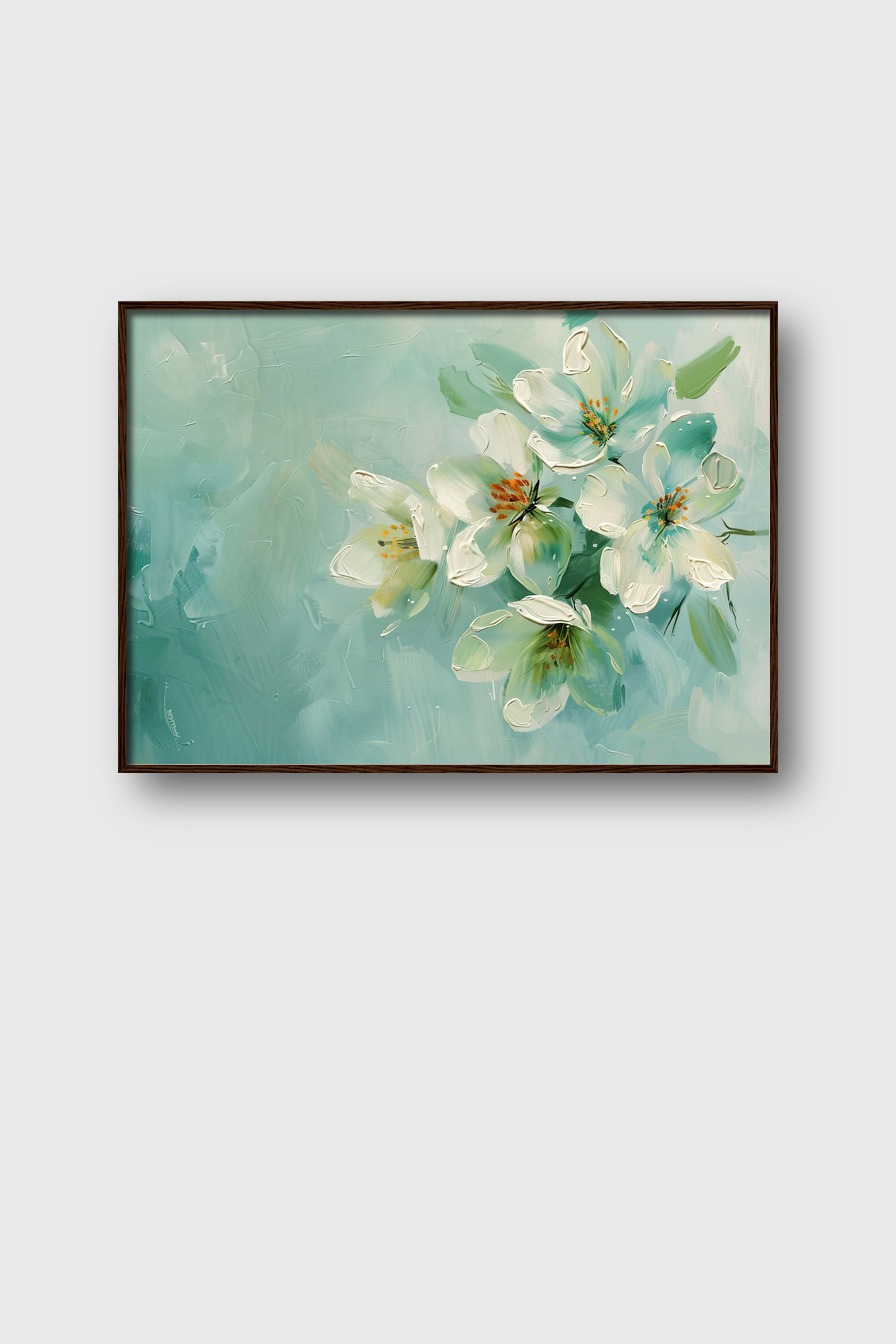 Blütenzweig Weiß Grün Gerahmt Blütenzweig Weiß Grün Gerahmt