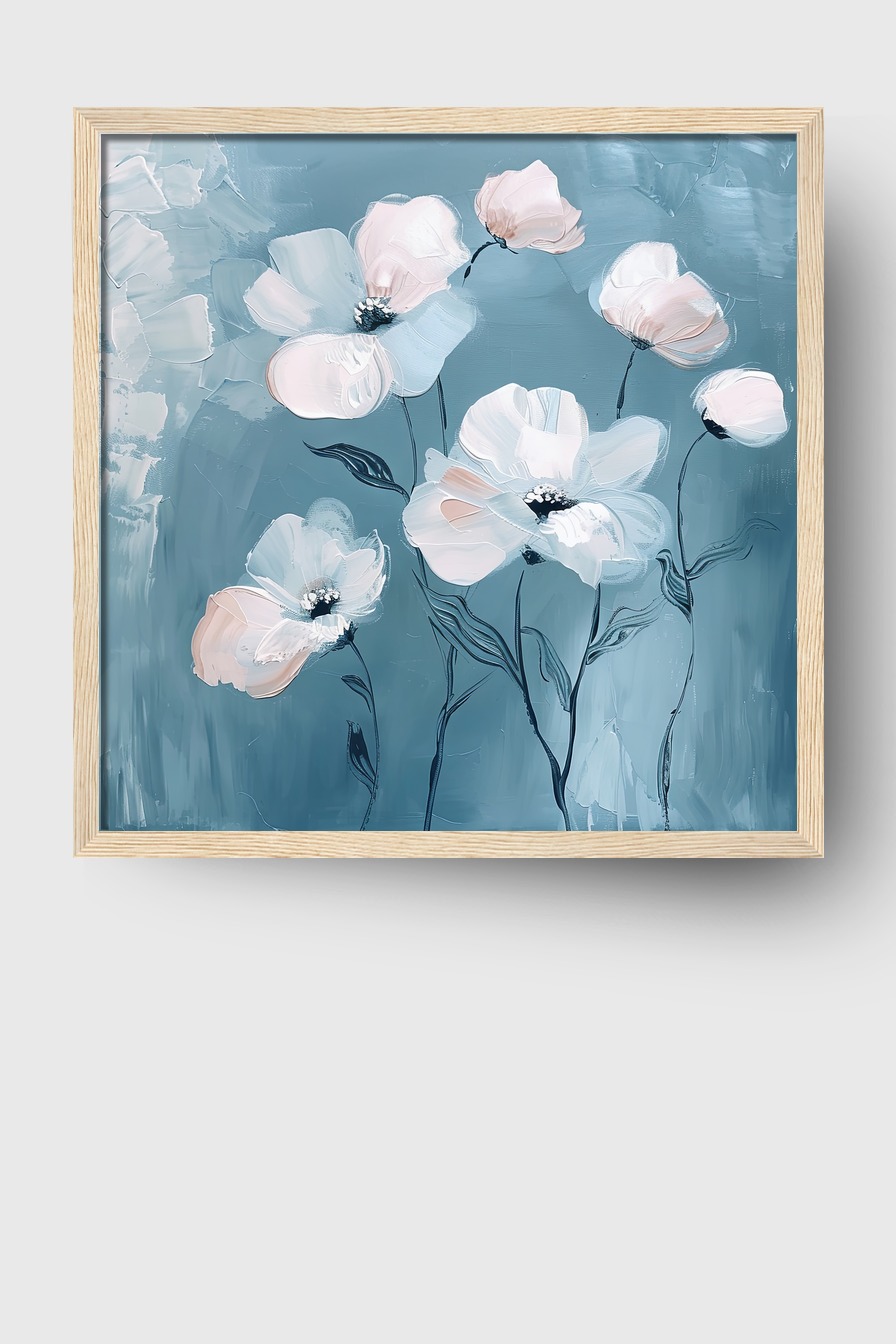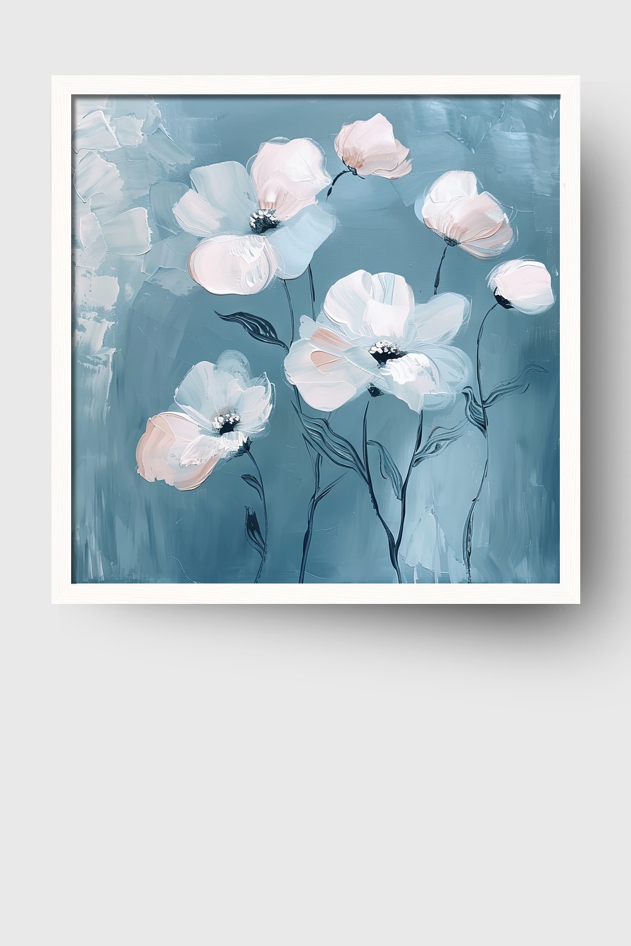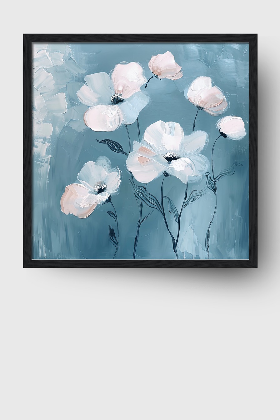 Im Raum konzentriert das Motiv Aufmerksamkeit auf die feine Textur und die klare Komposition der Blumen mit langen Stielen.