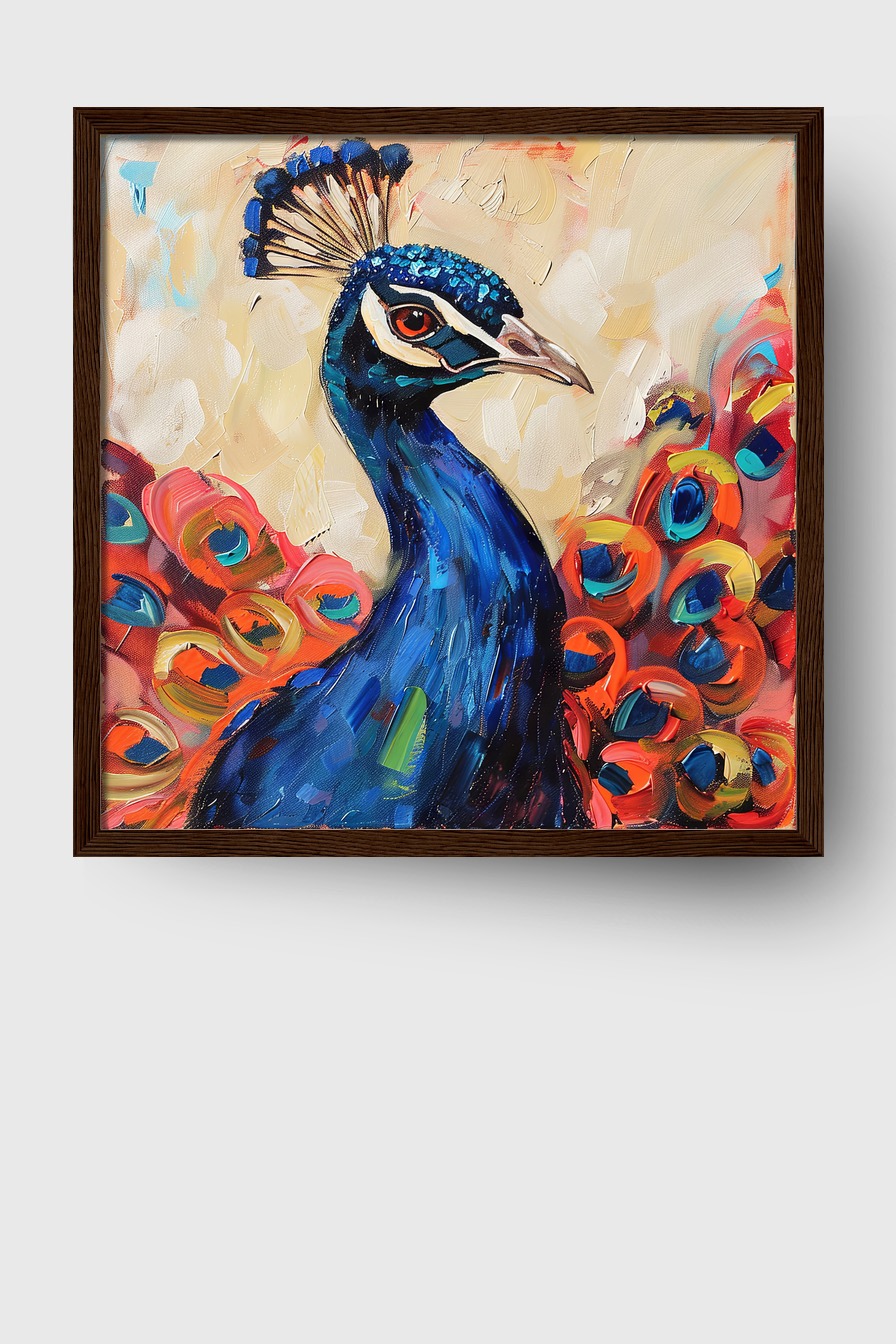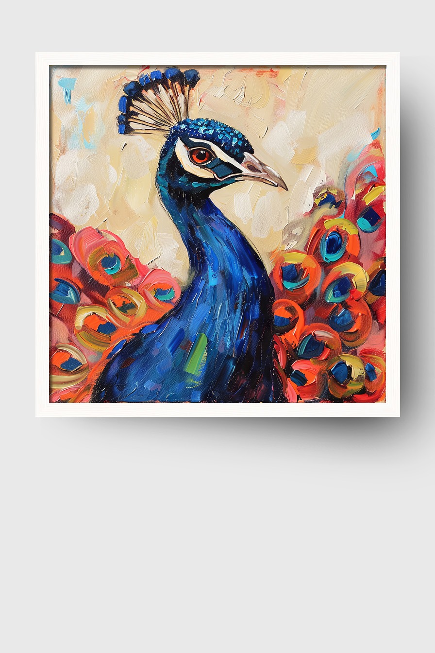 Pfau Kopf Farbig Gerahmt