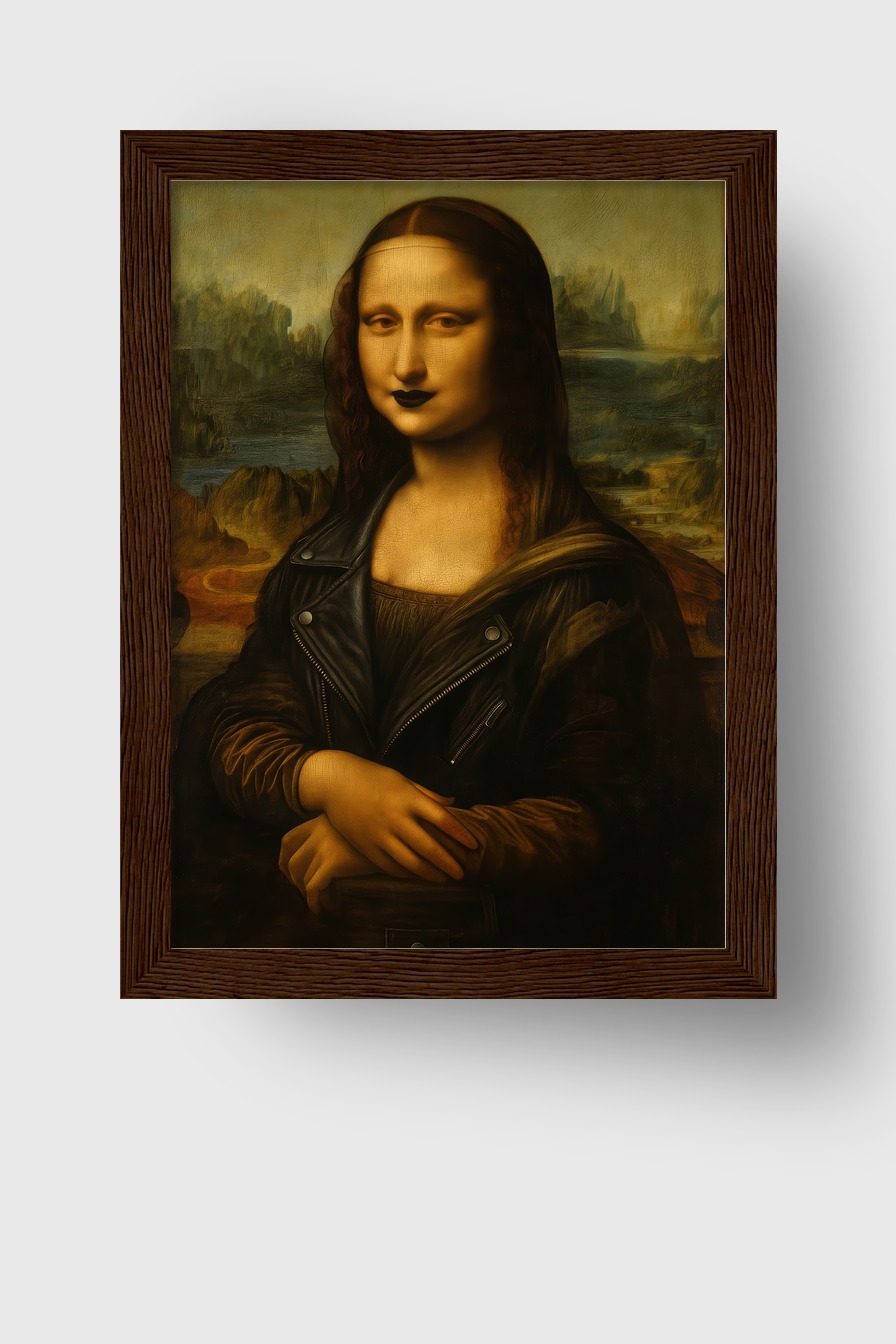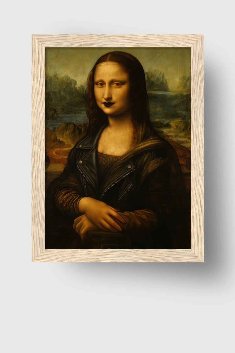 Illustration Poster Mona Lisa Lederjacke schwarz vintage