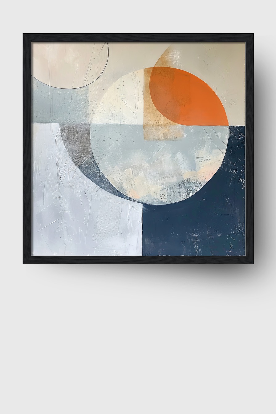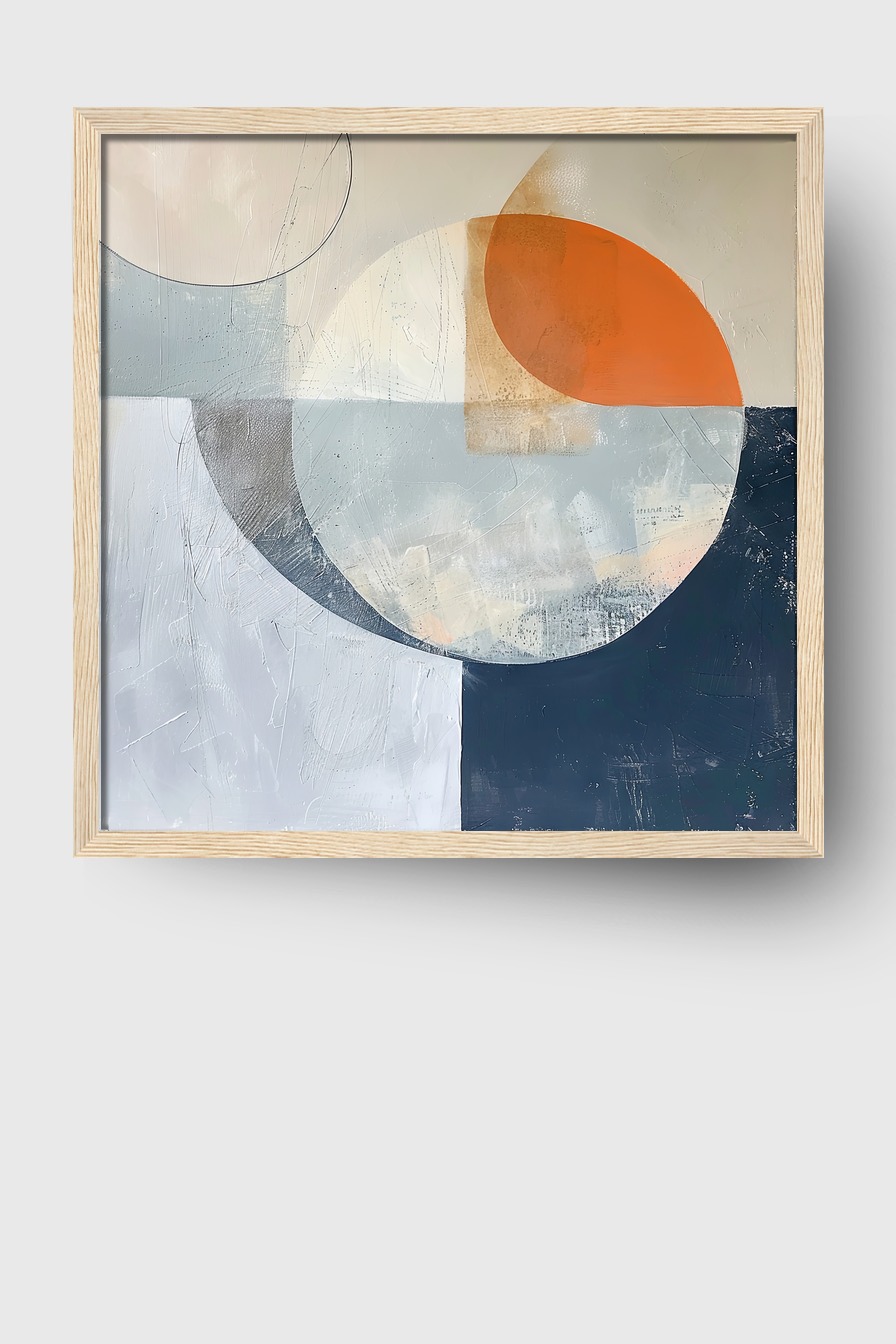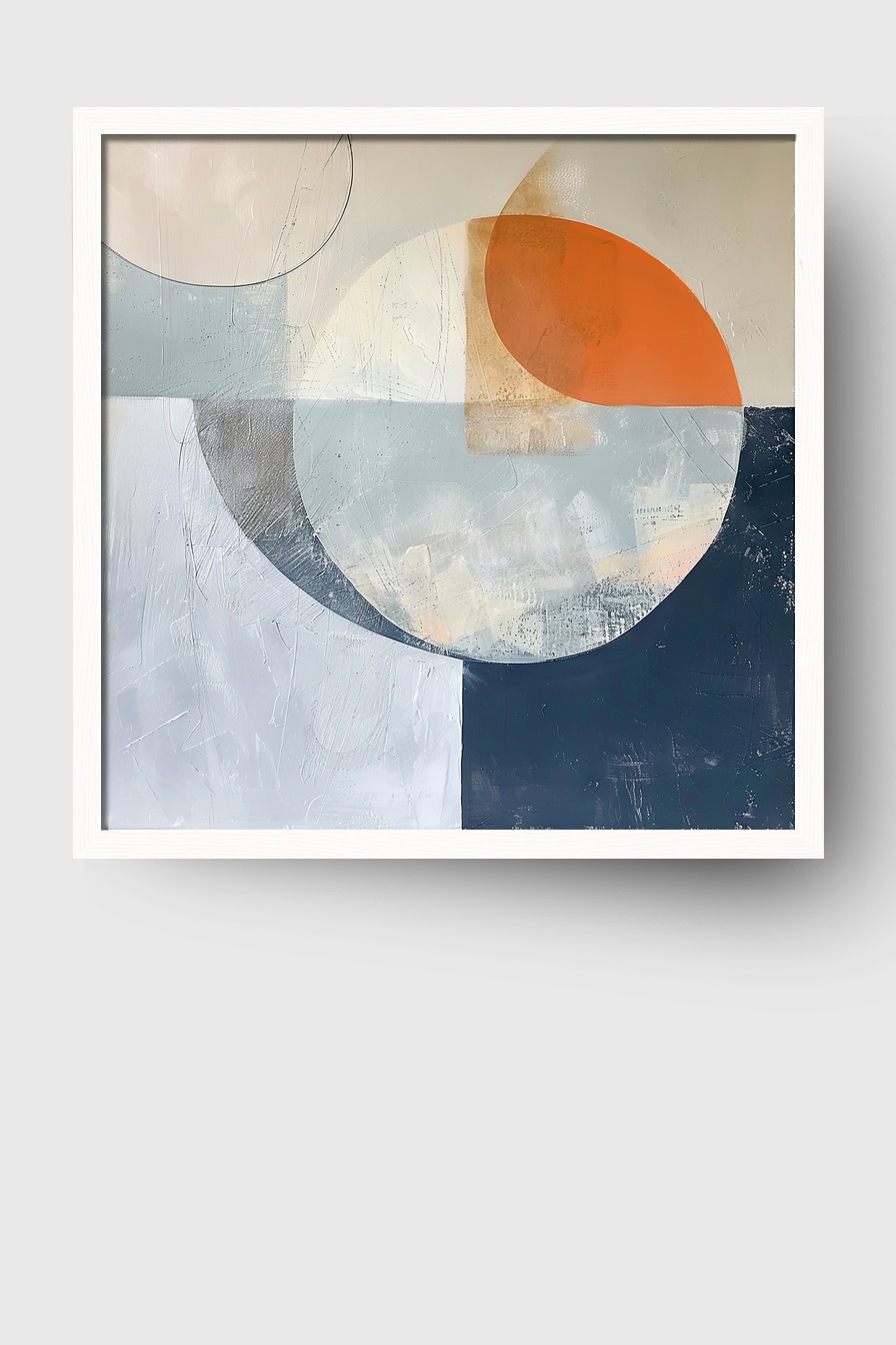 Das Bild zeigt eine abstrakte Anordnung aus Halbkreisen und Rechtecken in gedeckten Farben mit einem durchgehenden Orange-Akzent. Die Kombination aus sanften und kräftigen Tönen wirkt klar und modern.