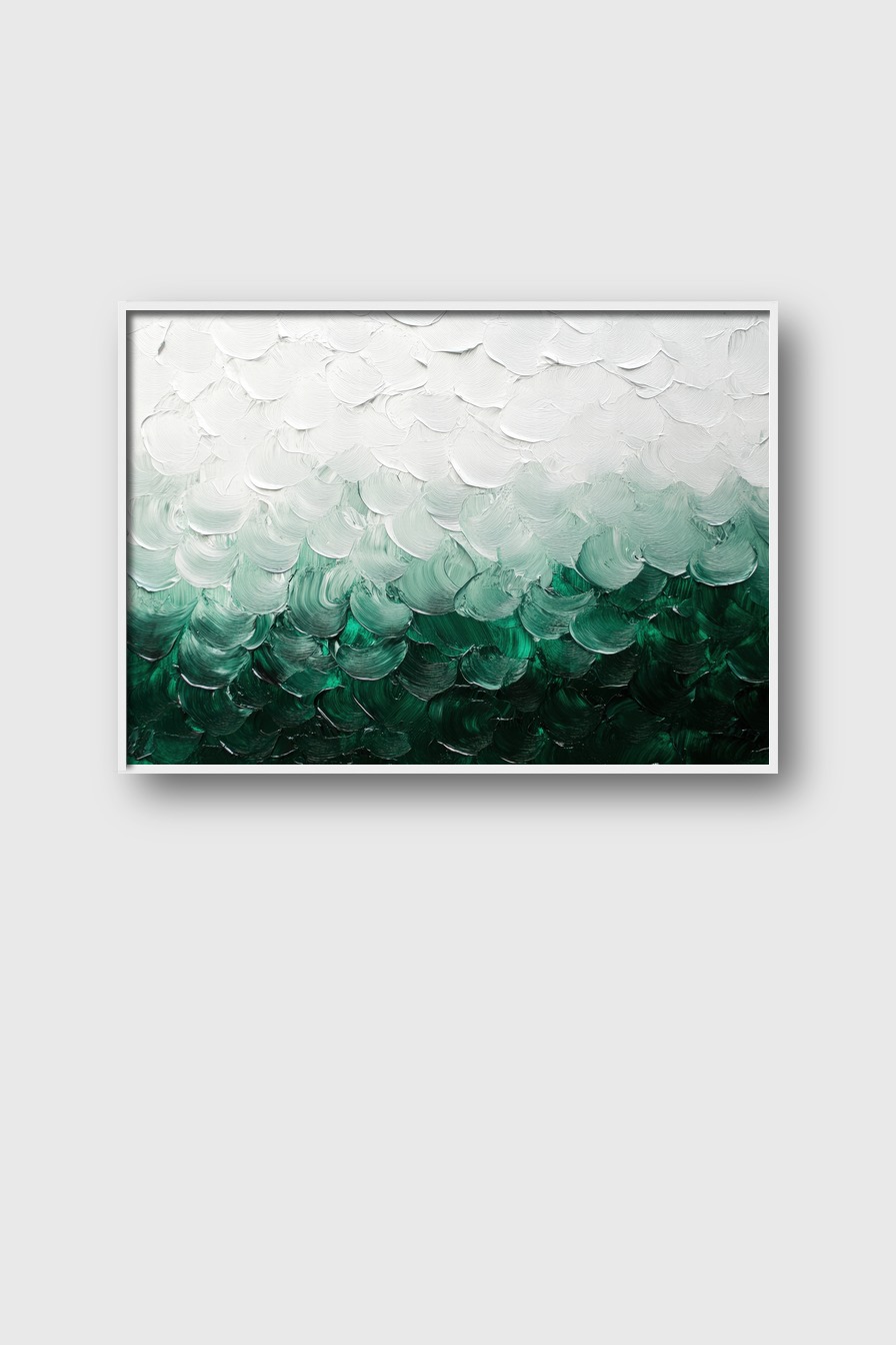 Abstrakter Kunstdruck mit grünen und weißen Farbschichten in Spachteltechnik, strukturierter Farbauftrag als Poster für moderne Räume