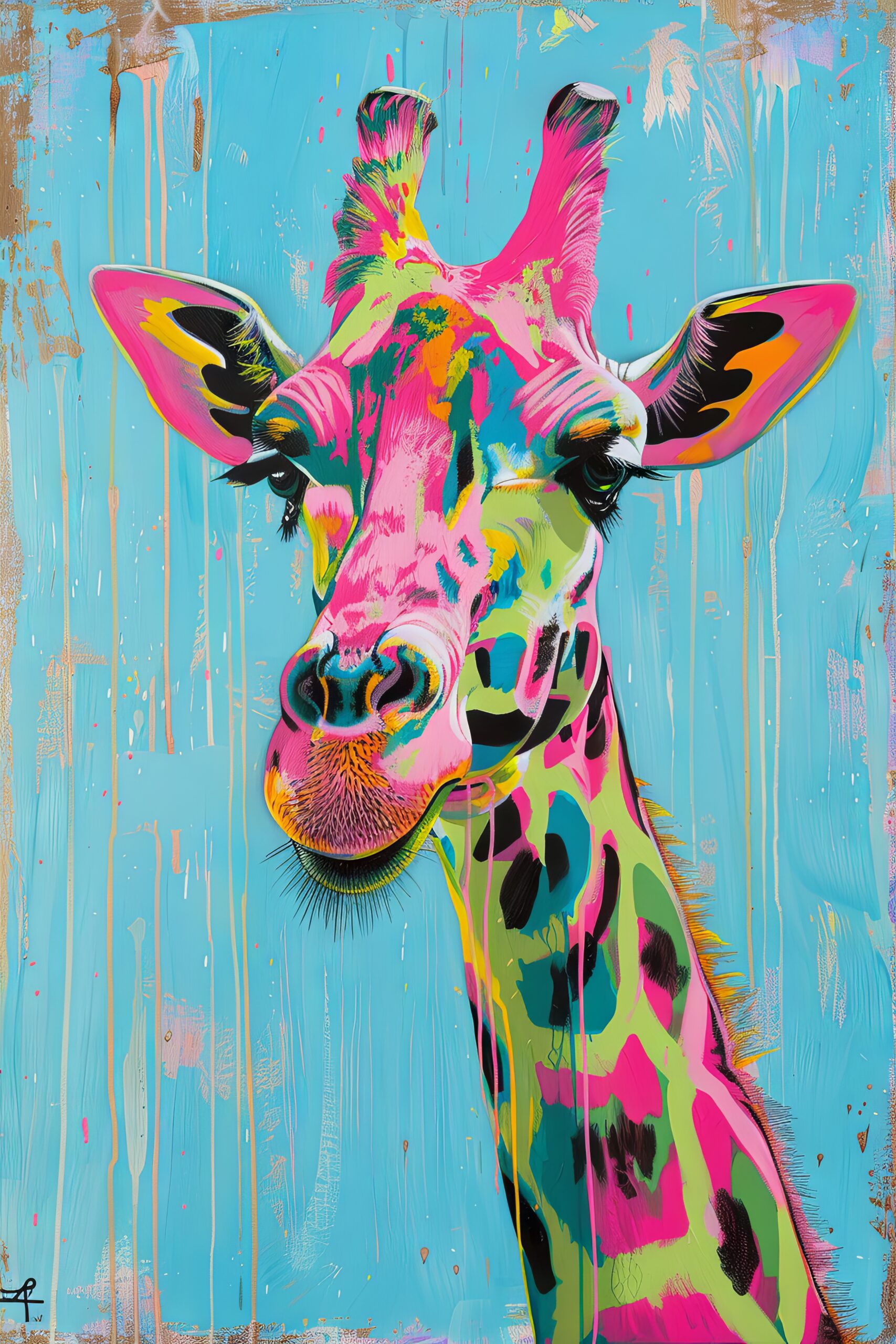 Digitale Kunst Poster Giraffe bunt farbig blau