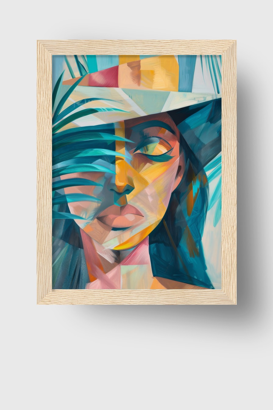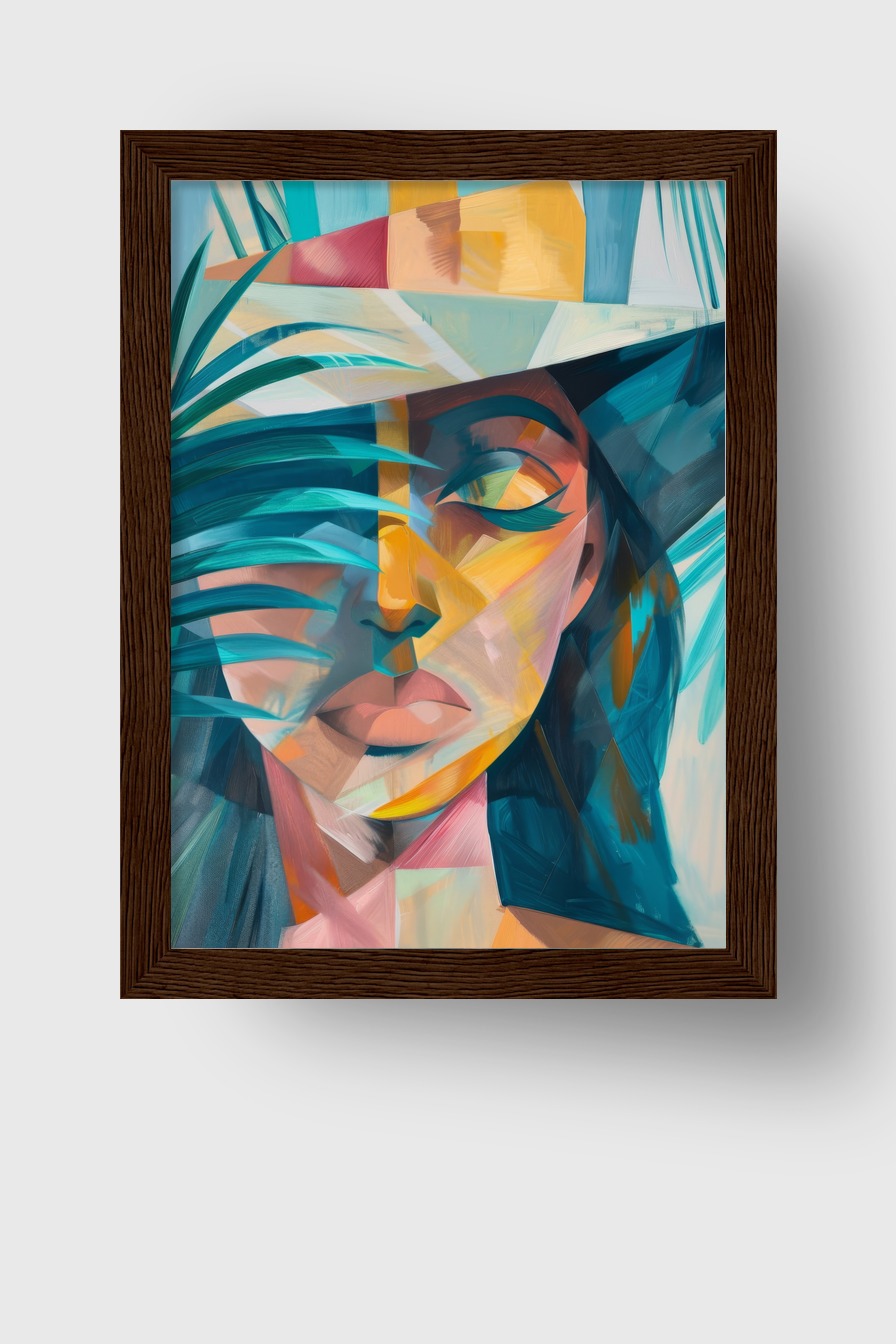 Frau Hut Palmblatt Gerahmt