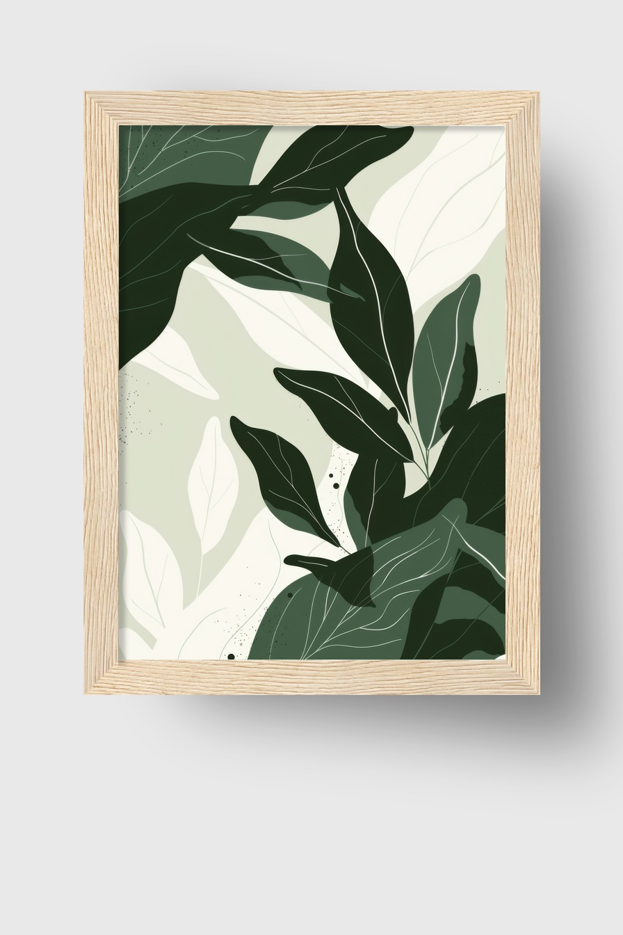 Dieses Motiv zeigt eine Gruppe grüner Blätter mit feinen Adern vor hellem Hintergrund. Die natürliche Form der Blätter steht im Fokus des Designs.