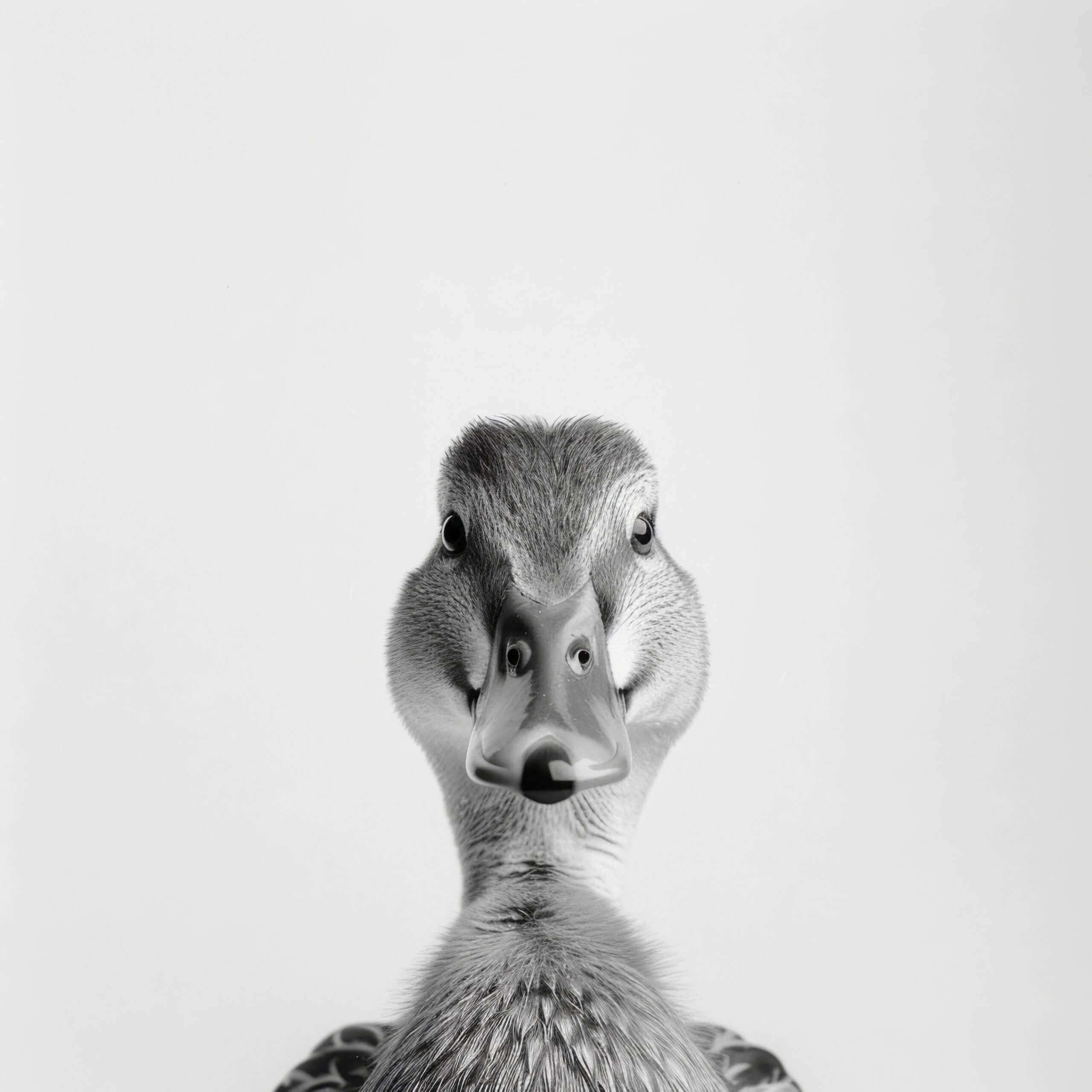 Die Ente frontal wirkt im Raum schlicht und zieht durch die klare Darstellung den Blick stark auf sich.