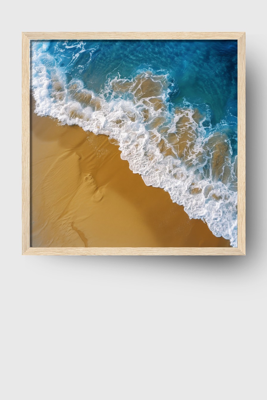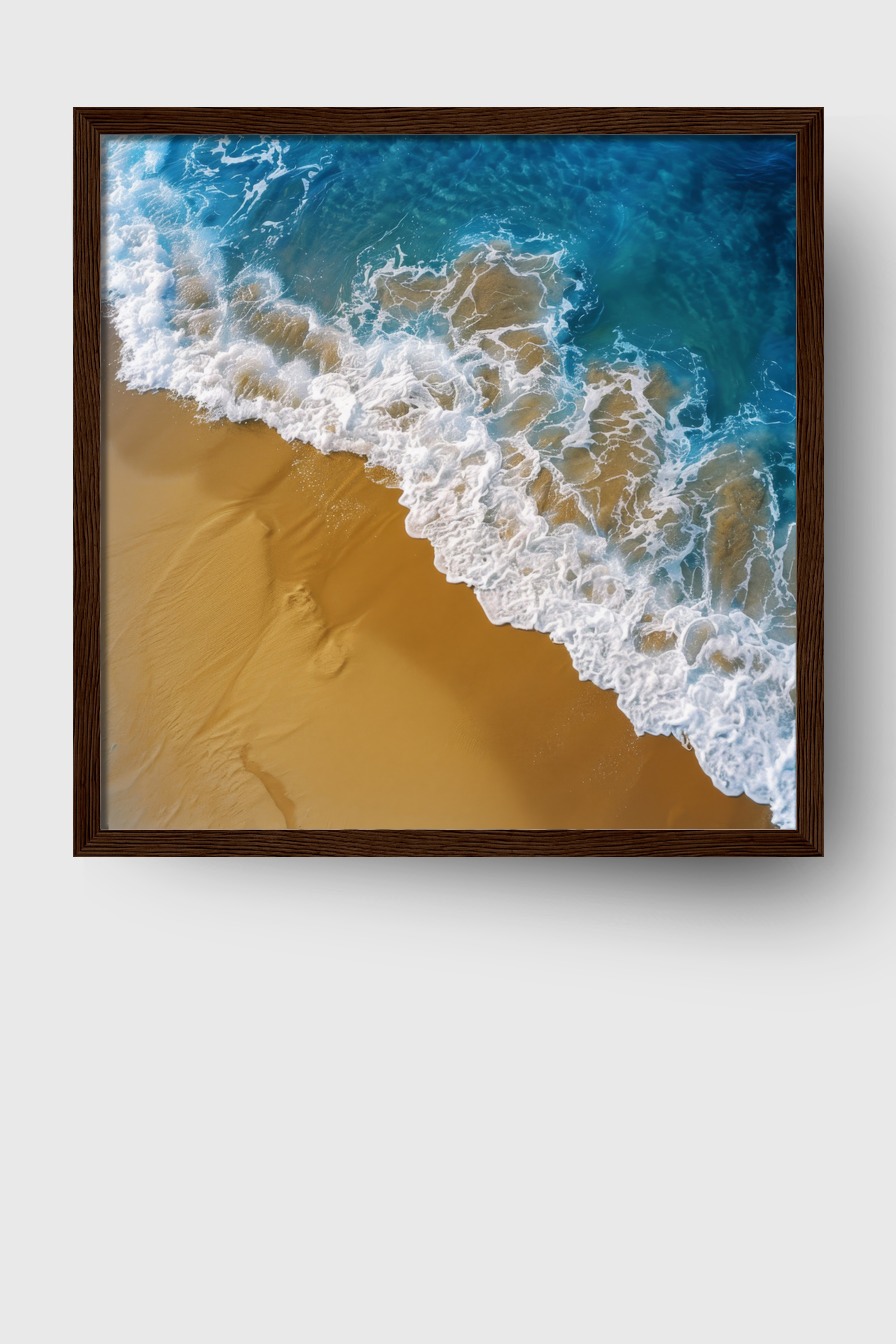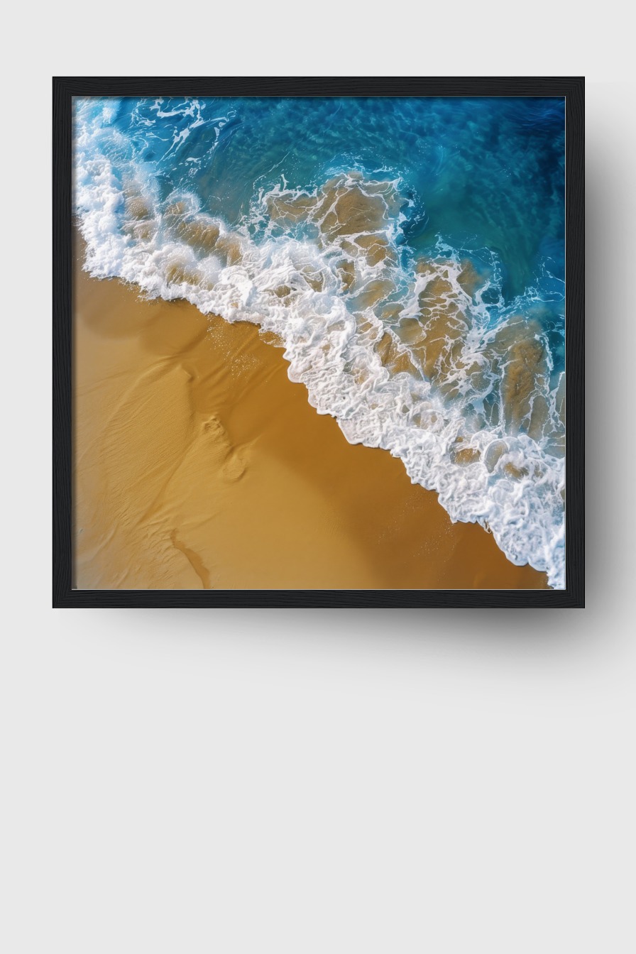 Die Szene wirkt im Raum wie ein kurzer Moment eingefangen, der Ruhe und doch ständige Bewegung vermittelt. Die feinen Details der Wellenränder und Schaumstrukturen laden dazu ein, das Naturschauspiel immer wieder zu entdecken.