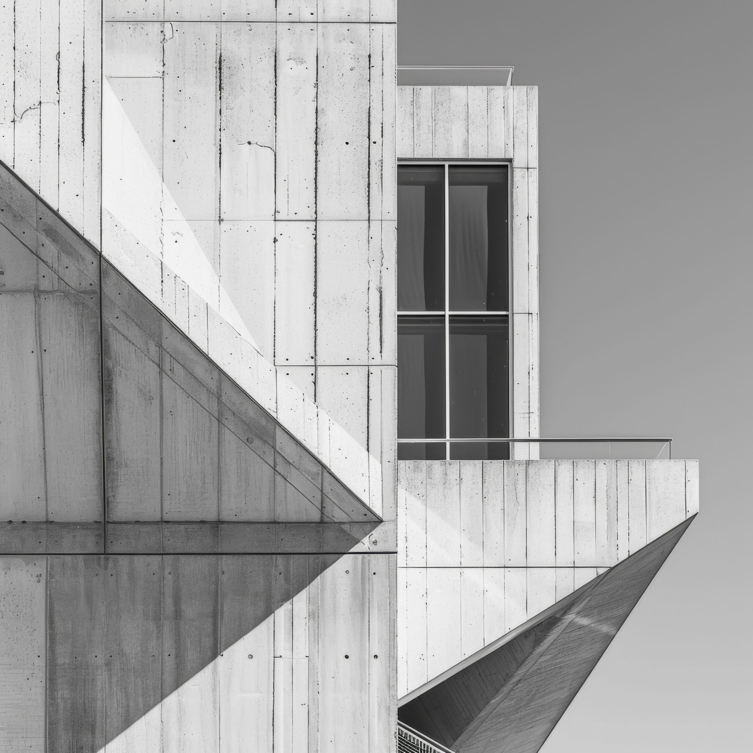 Schwarz-Weiß Poster einer modernen Betonfassade mit klaren Linien, Fenstern und Schatten, minimalistischer Architektur Kunstdruck