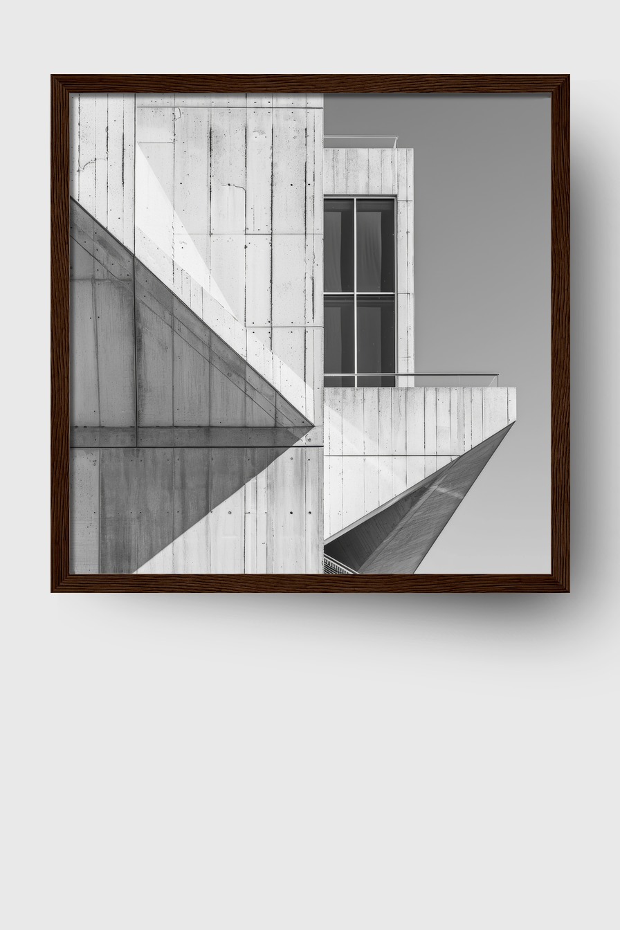 Klare Linien und Betonstruktur, gedruckt auf 170 g/m² mattes Papier. Hinter bruchsicherem Plexiglas im Kiefernholzrahmen (FSC). Erhältlich in verschiedenen Farben, mit Aufhängeset.