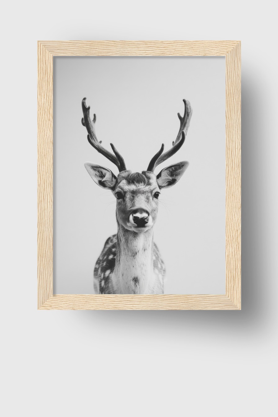 Sein ruhiges Antlitz und das klare Geweih schaffen im Raum eine stille, fast meditative Atmosphäre.