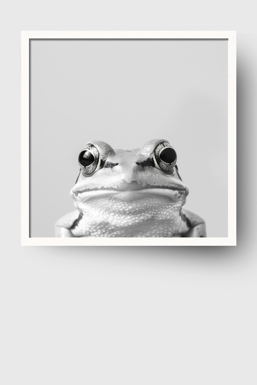 Im Raum entfaltet sich eine ruhige, fast meditative Stimmung, die von der konzentrierten Haltung des Frosches ausgeht.