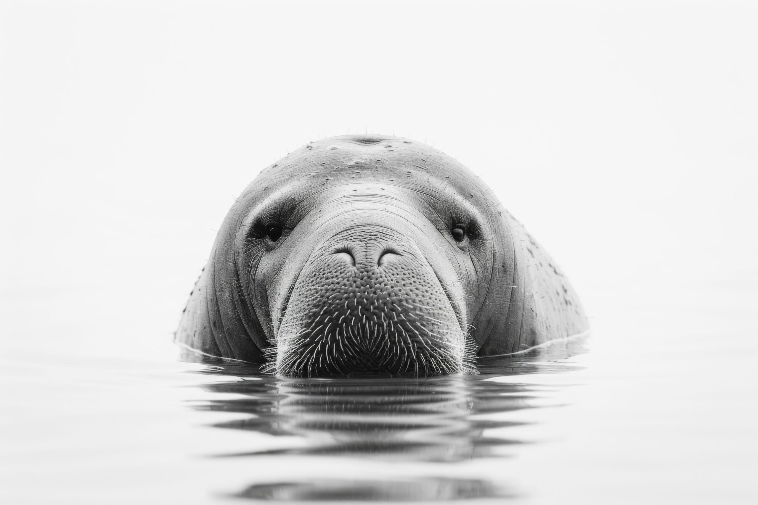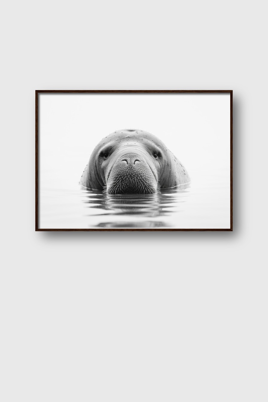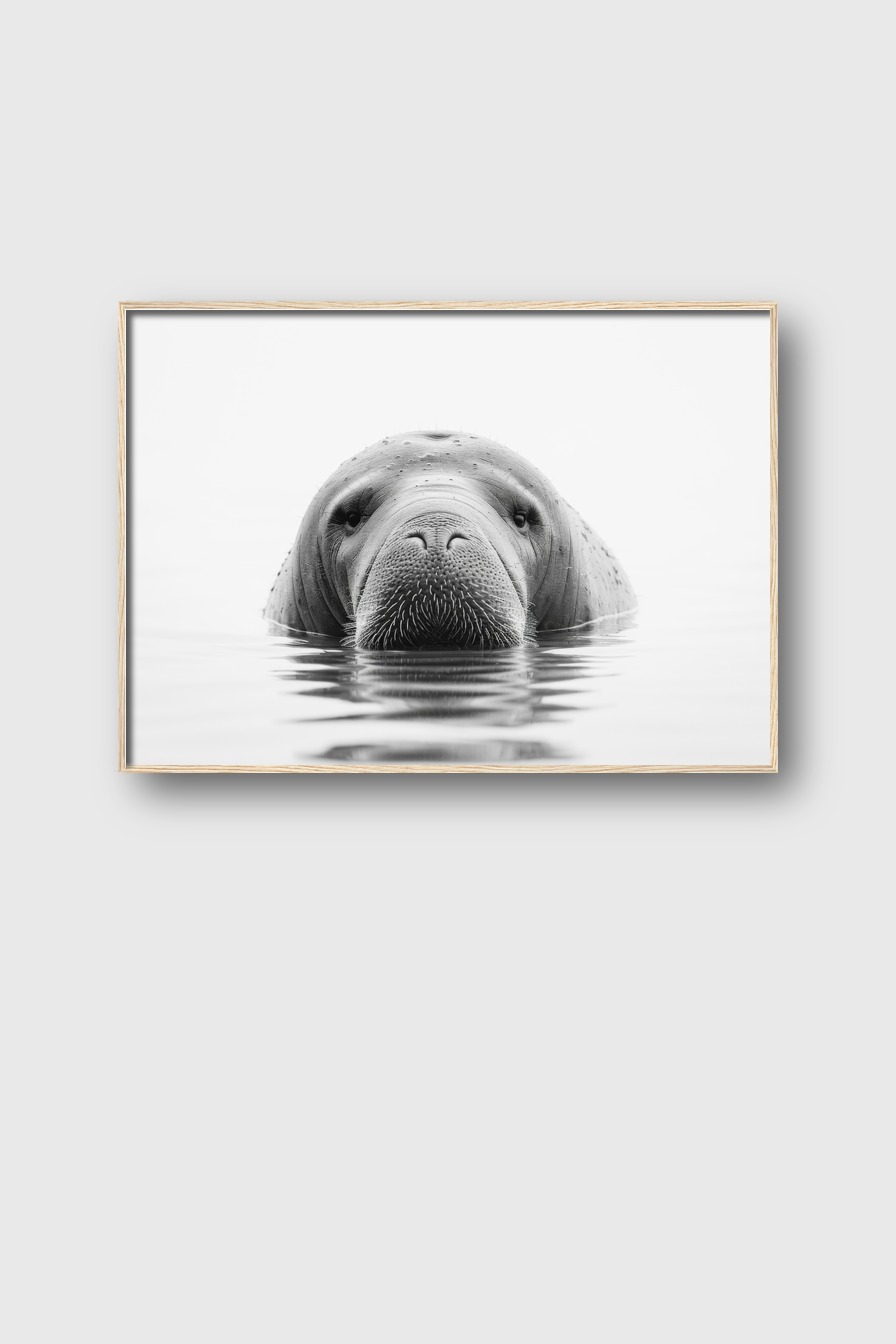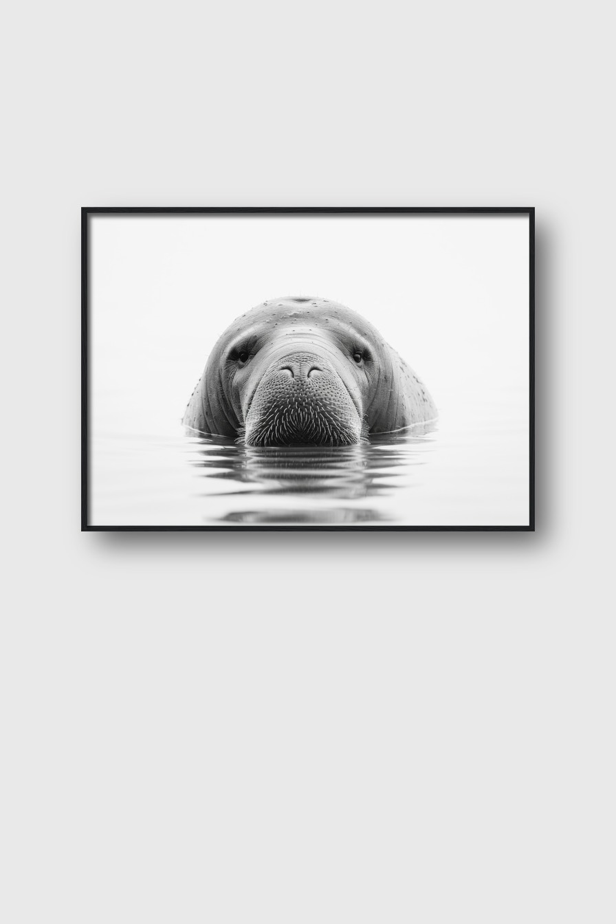 Im Raum fängt das zentrale, klare Frontalporträt des Seeelefants sofort den Blick ein und sorgt für eine eindrucksvolle, fast meditative Atmosphäre.