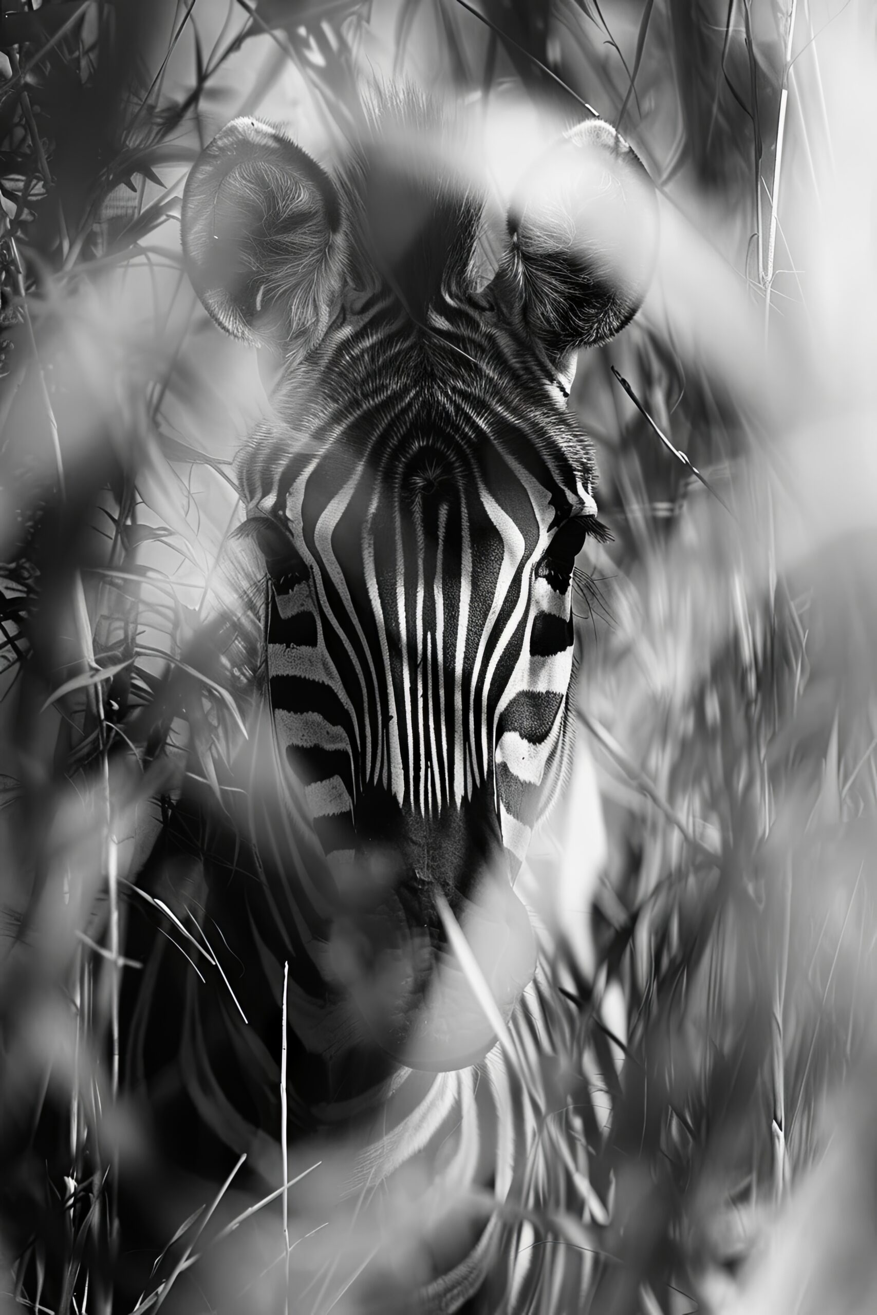 Das Motiv strahlt eine ruhige Präsenz aus und hebt den natürlichen Schutzraum hervor, den das Grass versteckt bietet. Ideal um in jedem Raum eine klare, reduzierte Dynamik zu erzeugen.