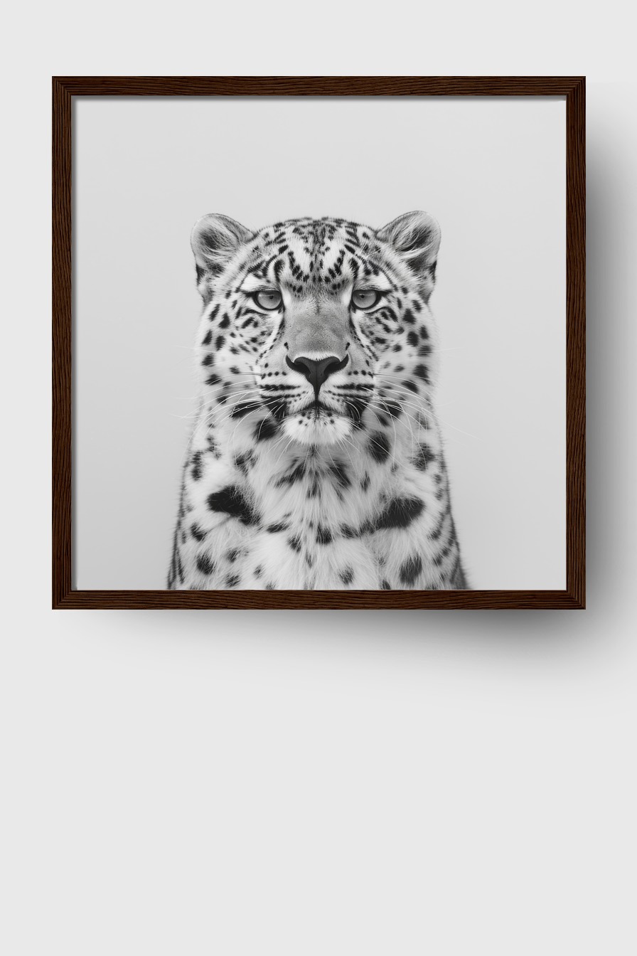 Schneeleopard Frontal Gerahmt