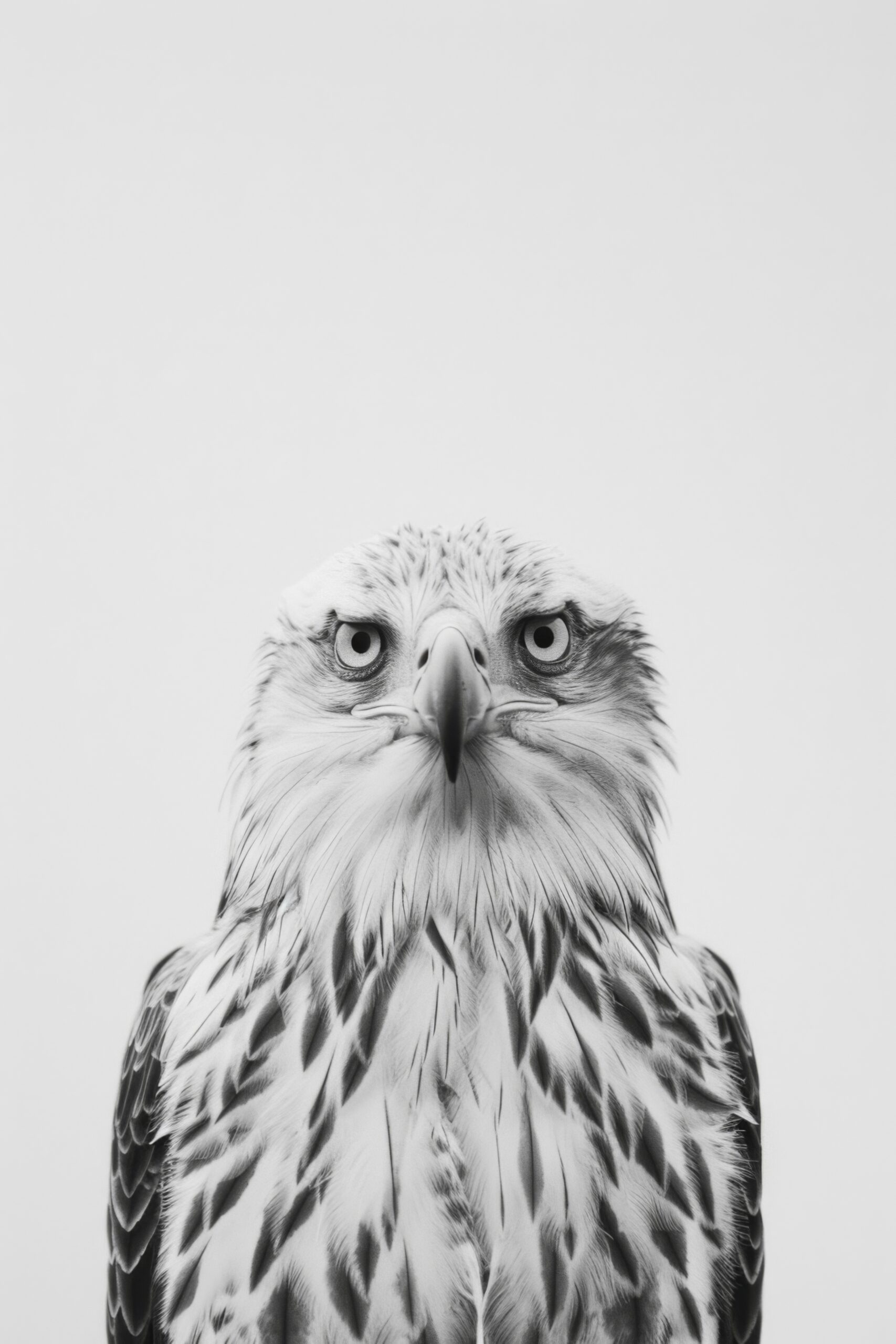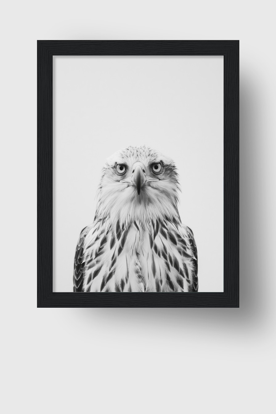 Im Rahmen wirkt der Adler fast greifbar nah. Raffinierte Details der Federn betonen die eindringliche Mimik. Minimalismus trifft intensive Wirkung.