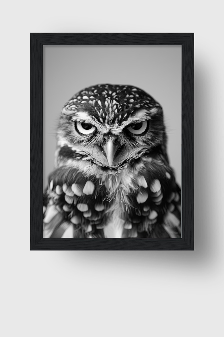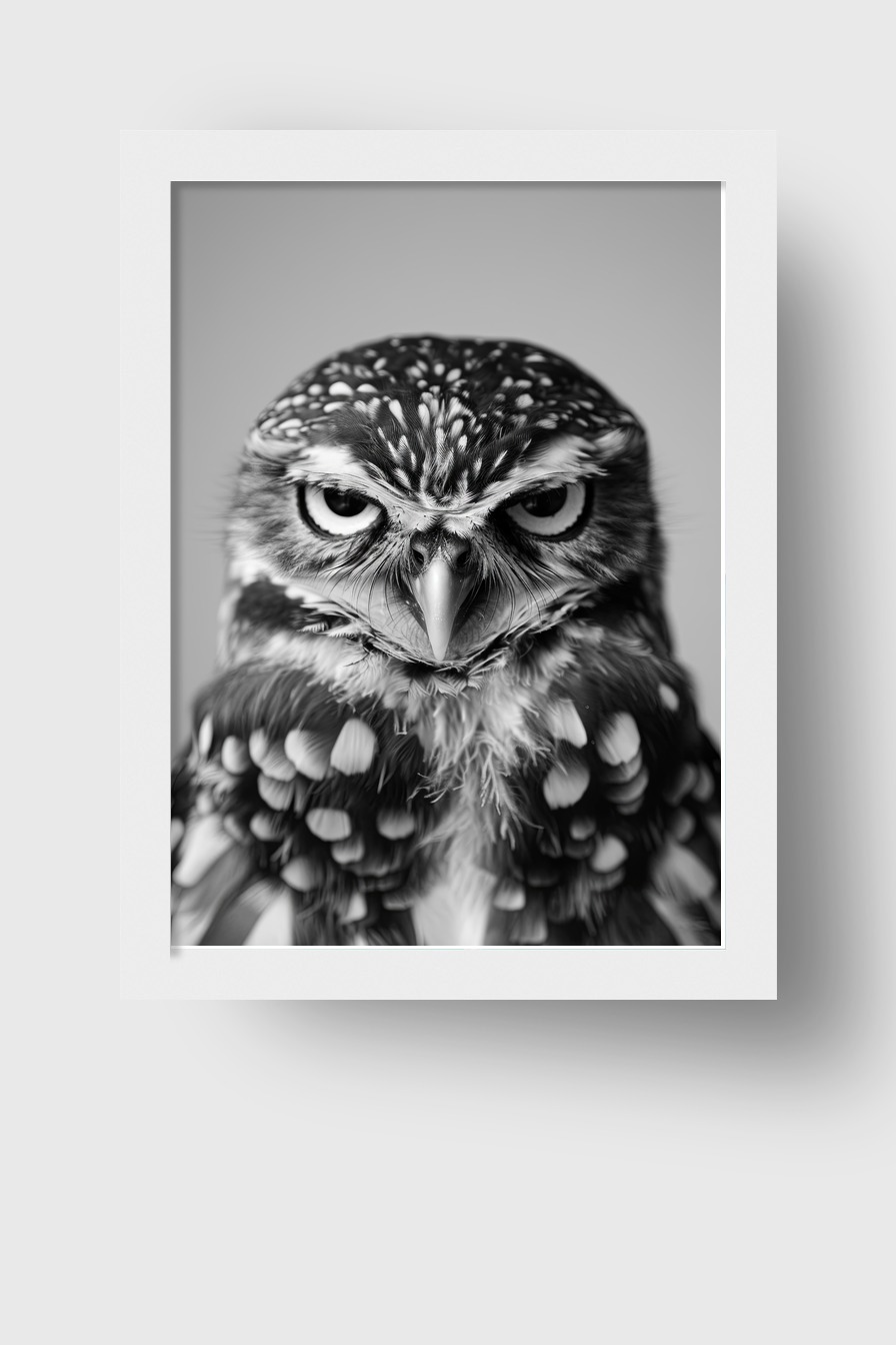 Fotografie Poster Eule Porträt schwarz-weiß intensiv