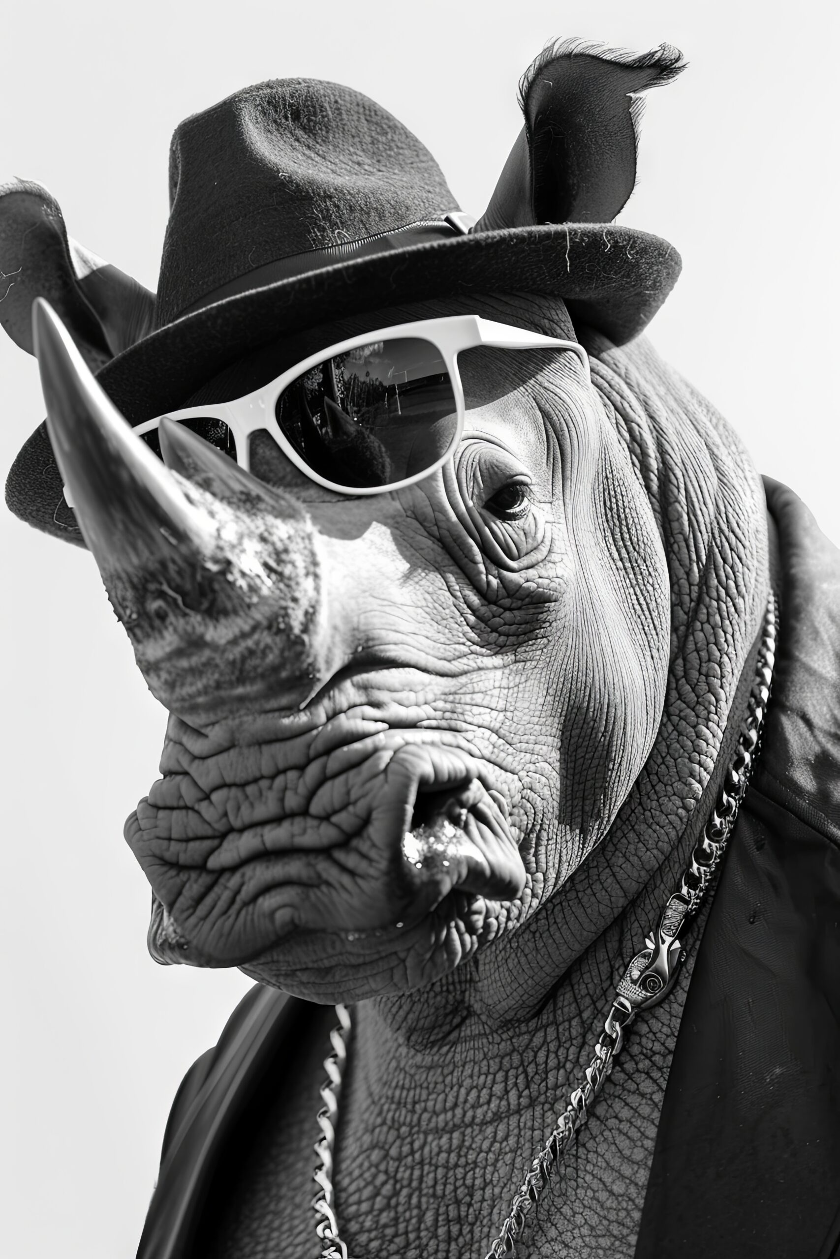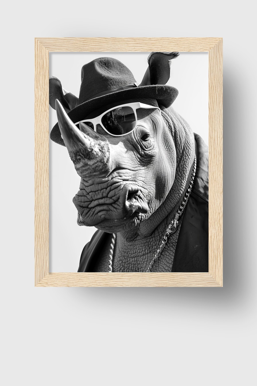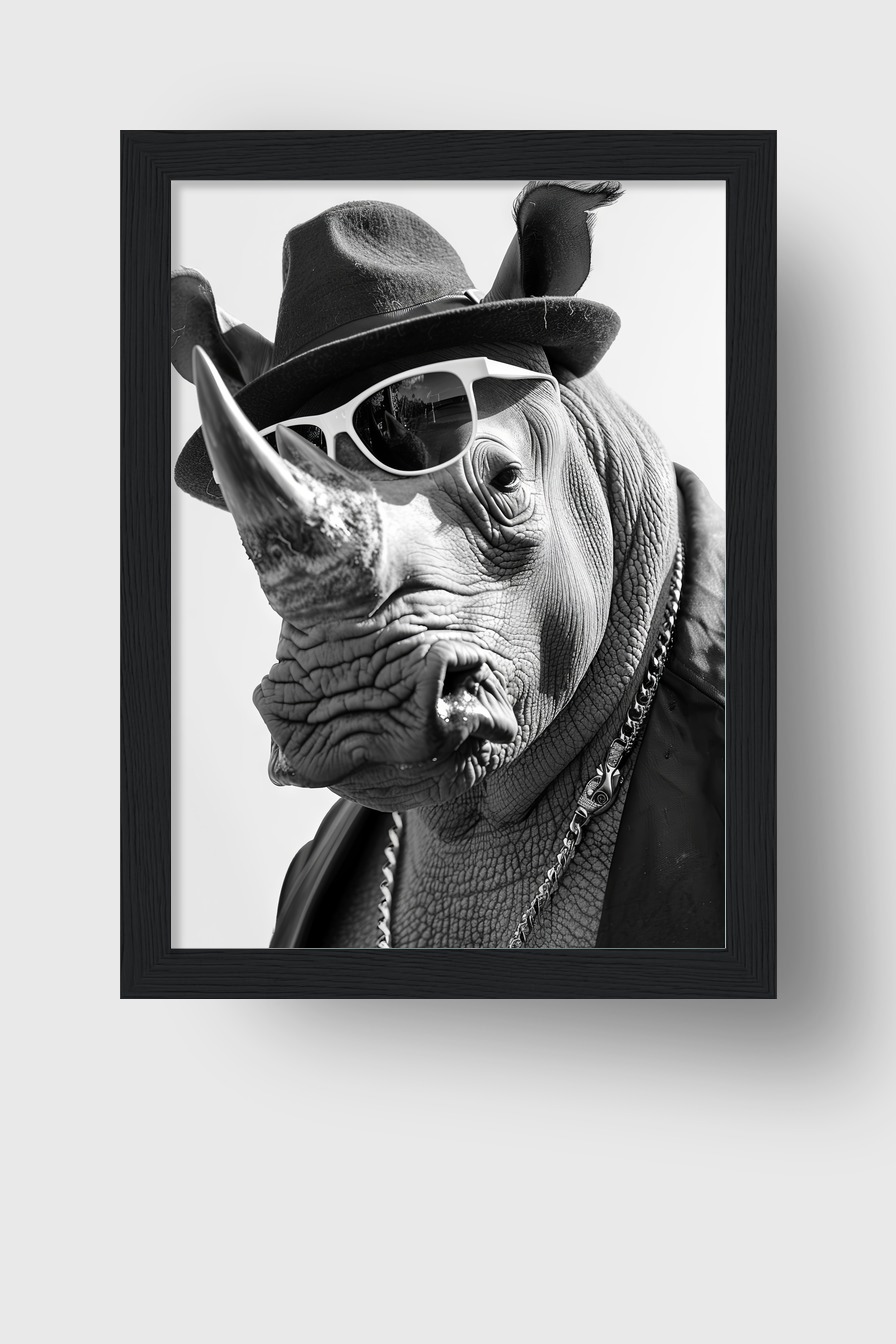 Fotografie Poster Nashorn Sonnenbrille Schwarz-Weiß